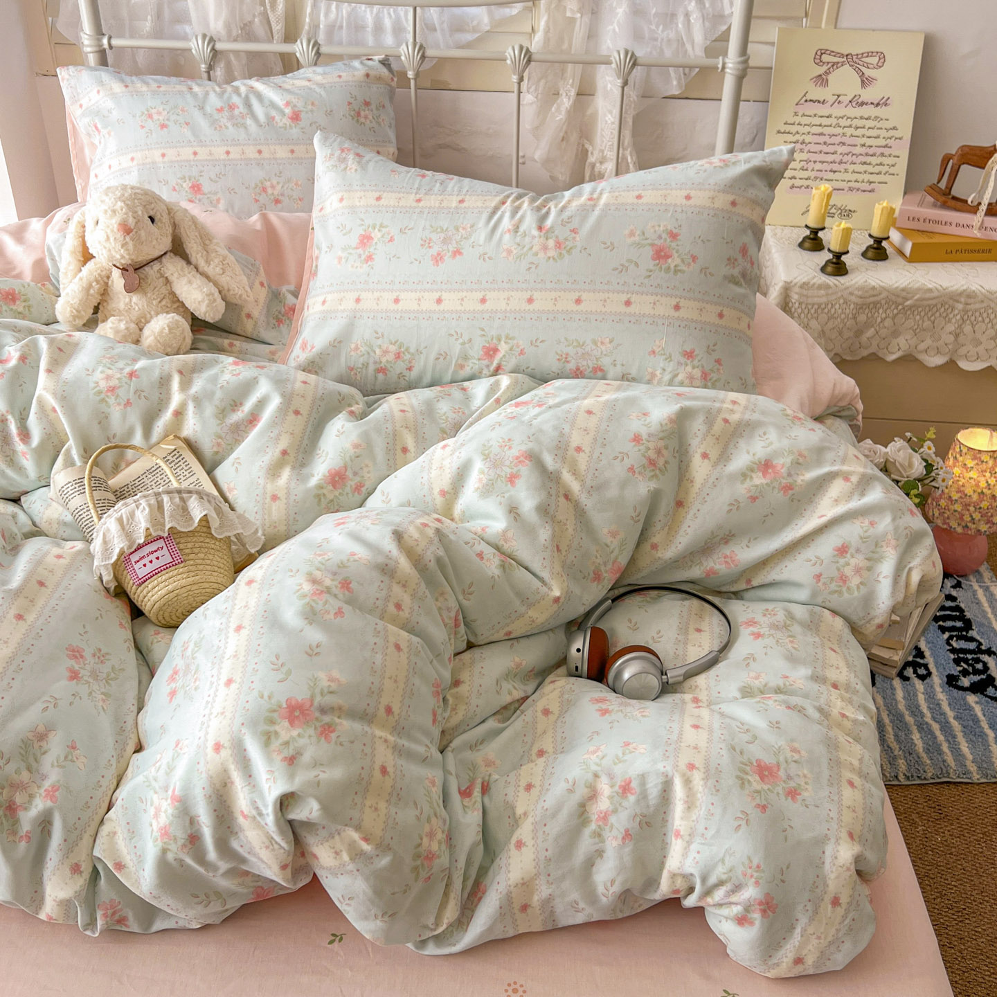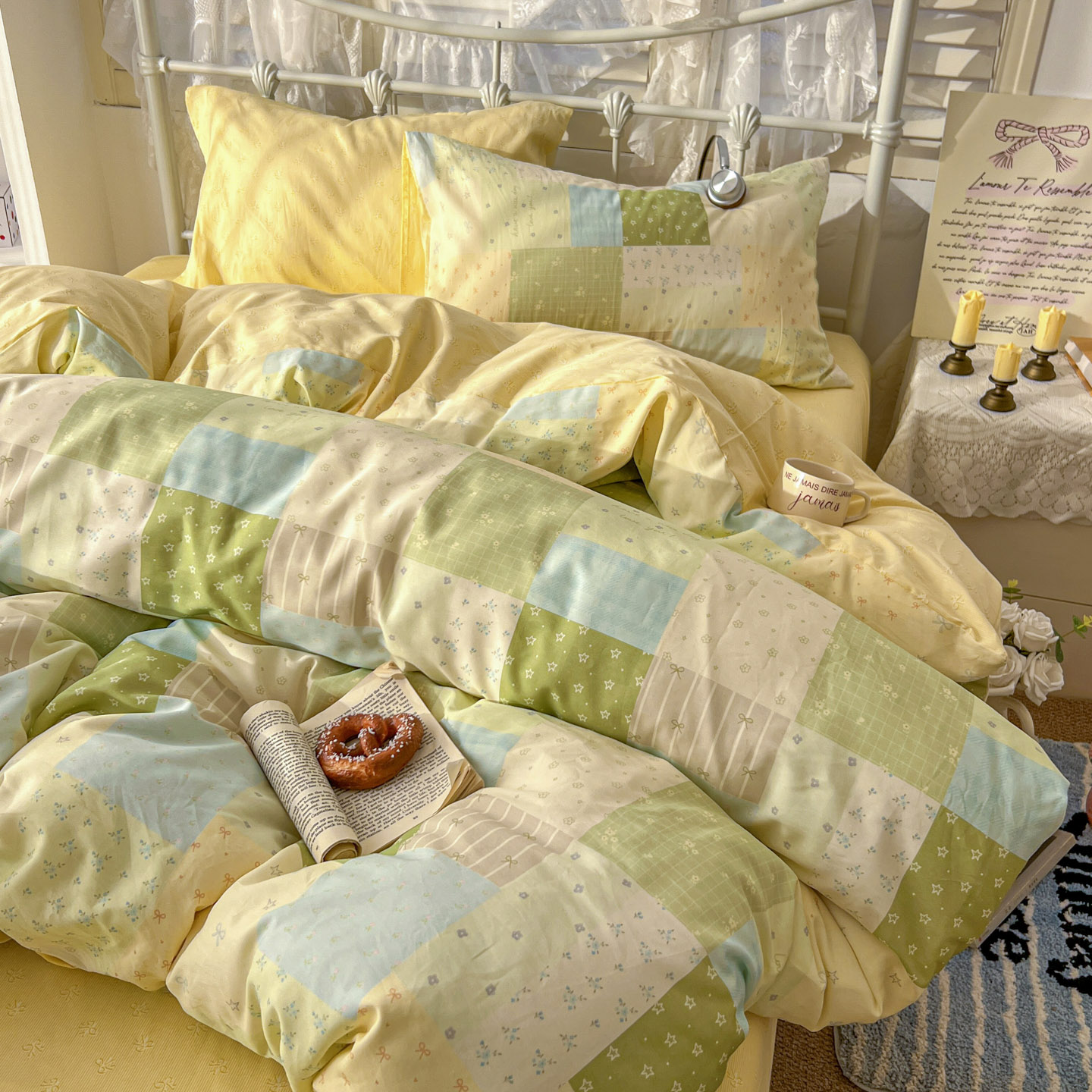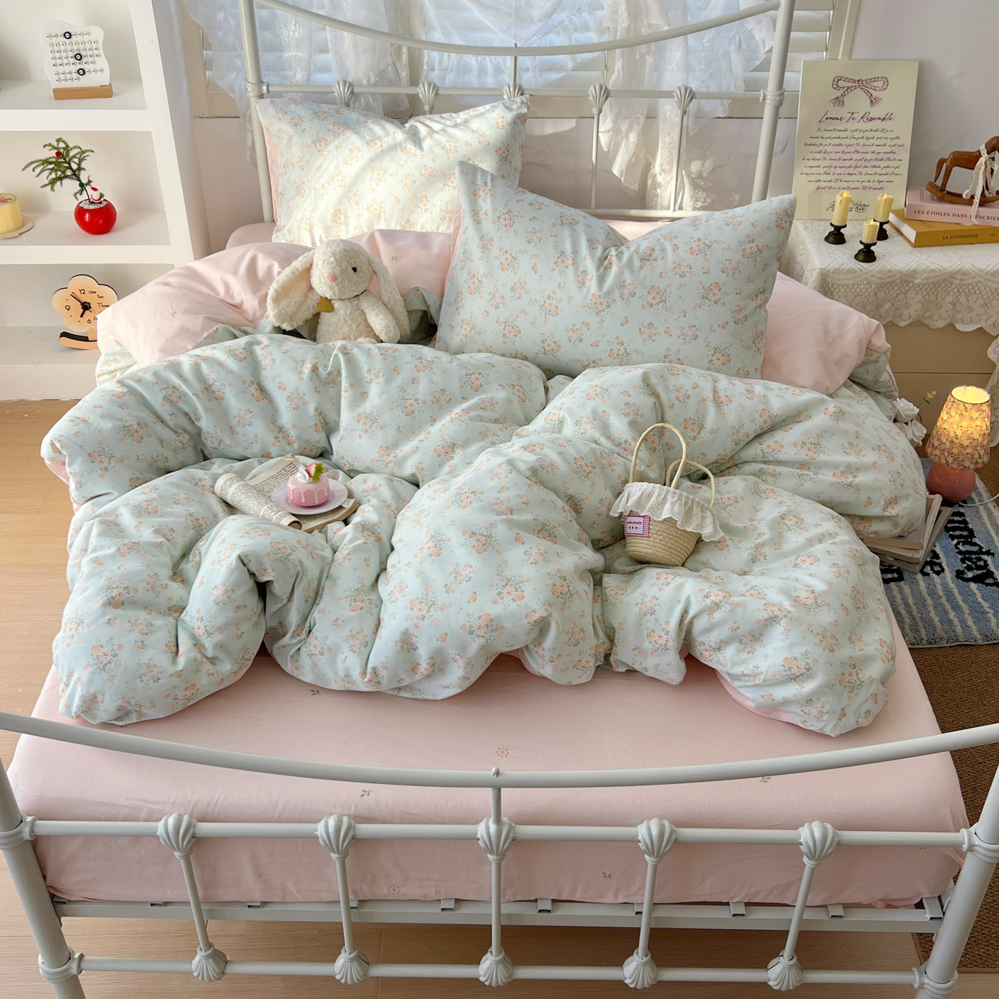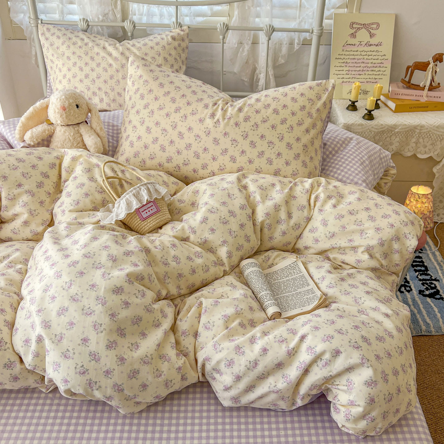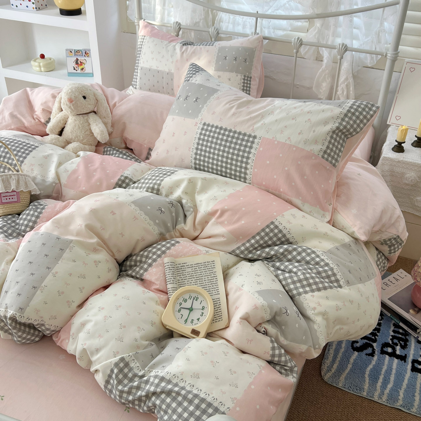 当前位置: 91家纺网 > 商品网购 > 床品套件 > 四件套 > 全棉普通四件套 > 桃喜 2026春夏新品全棉碎花三件套四件套-场景二 粉格拼布碎花(全棉)