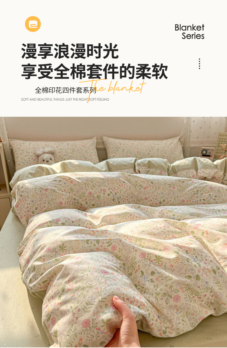 当前位置: 91家纺网 > 商品网购 > 床品套件 > 四件套 > 全棉普通四件套 > 麦伦家居 2026春夏新品13372全棉卡通小清新四件套 漫漫花香