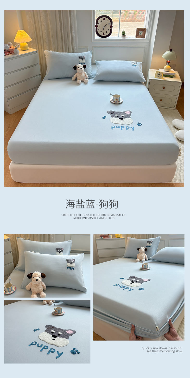 (总)居眠 2025新款A类母婴级卡通毛巾绣天丝床笠,假期小狗-天蓝,卡皮巴拉-水果绿,噗噗猫-肉粉,小树苗-奶昔白,小熊-姜黄