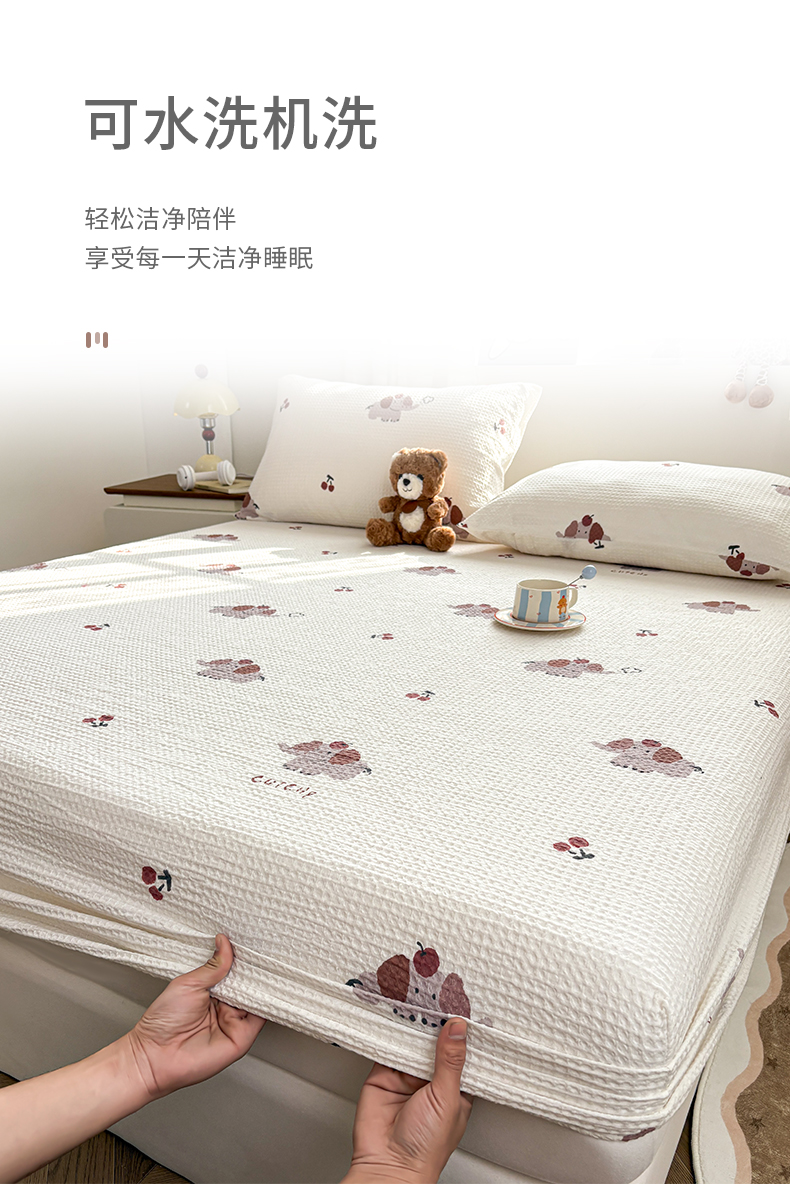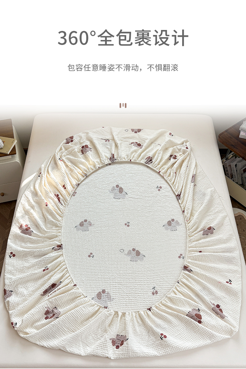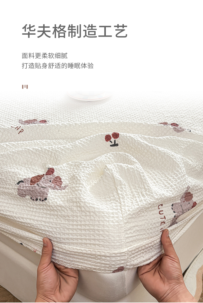 商品名称:居眠 2026新款全棉印花华夫格床笠 花眠