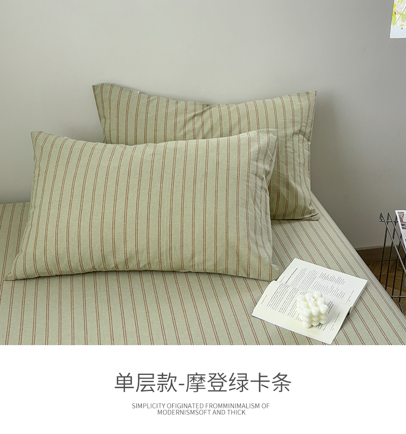 (总)居眠 2026新款单层色织水洗格子全棉枕套,单层款-摩登蓝卡条,单层款-摩登绿卡条