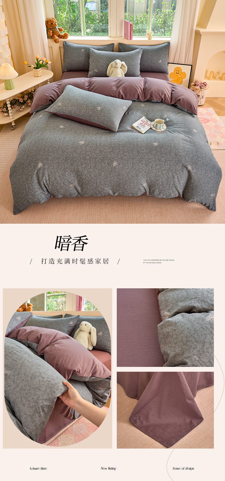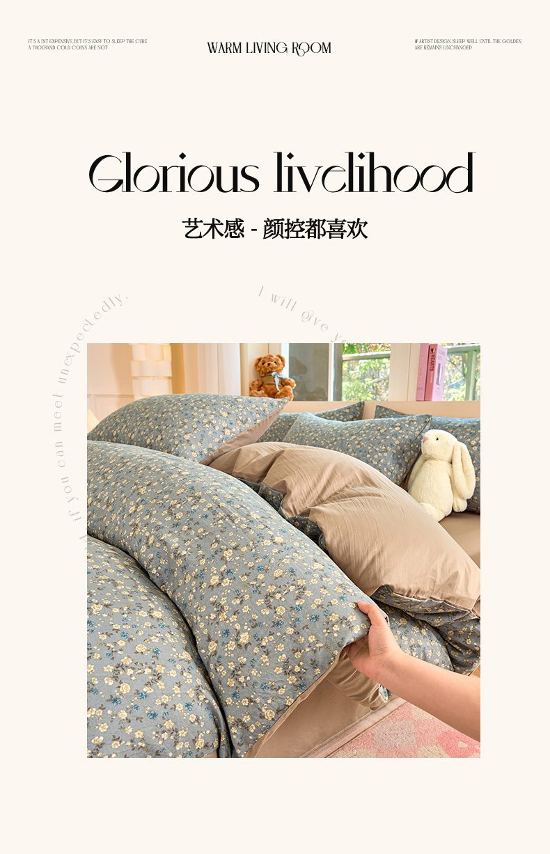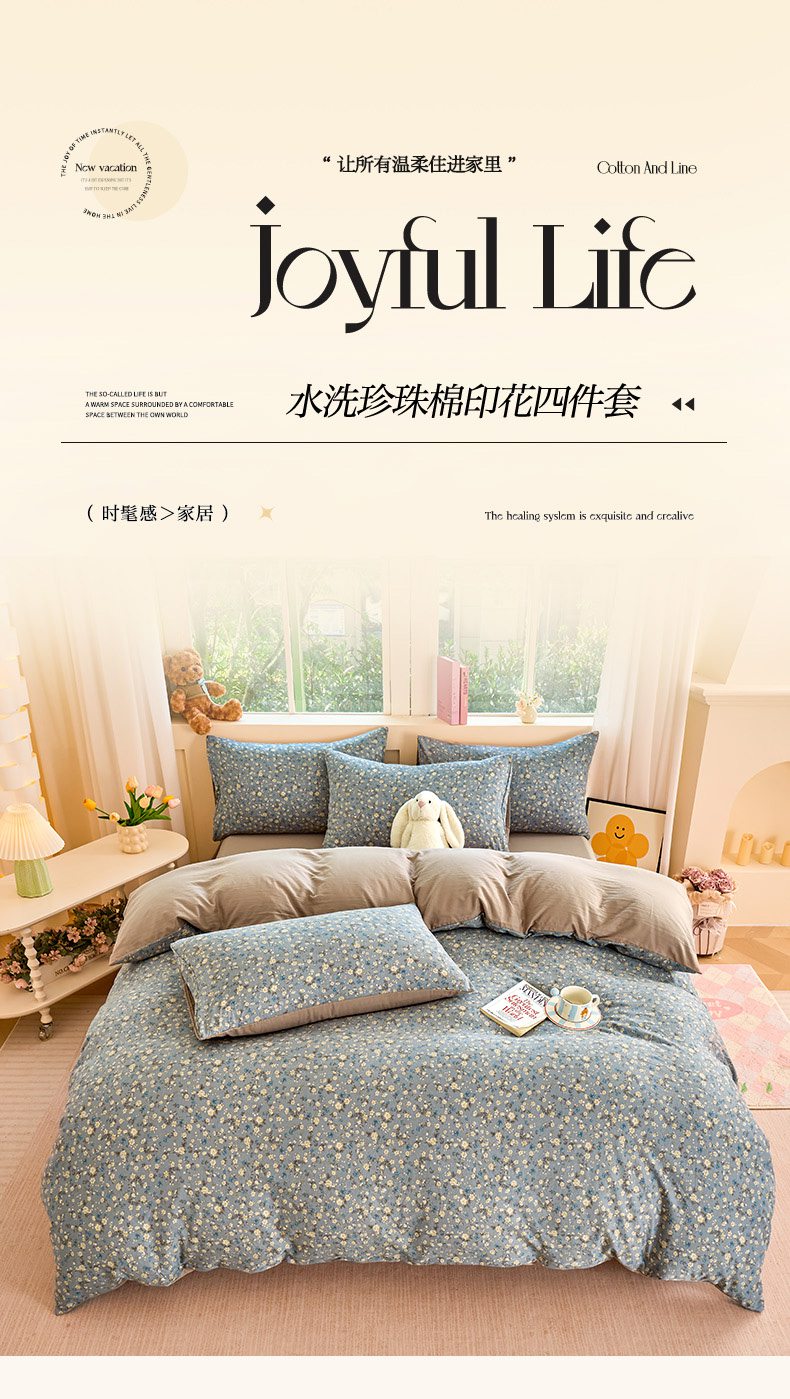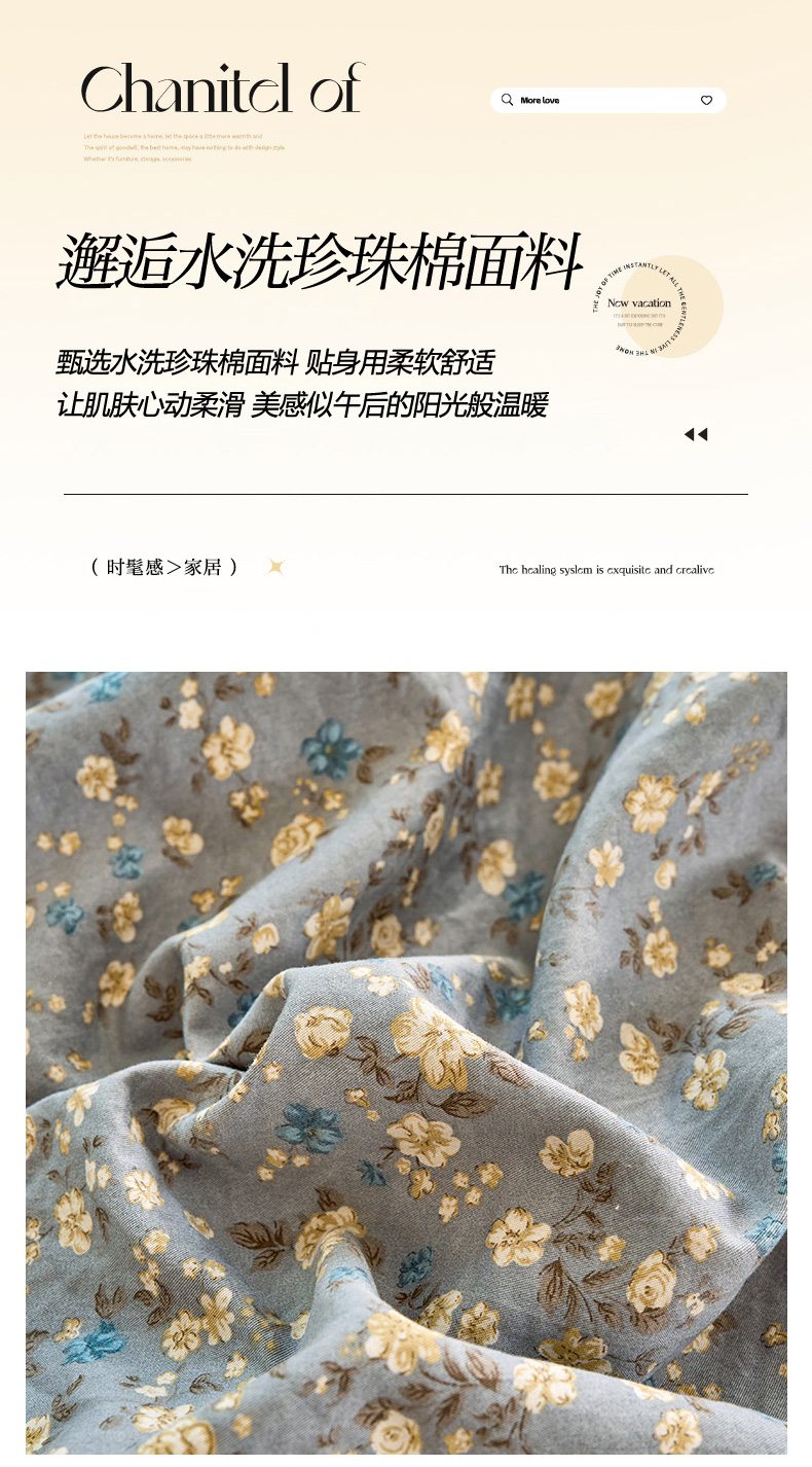 当前位置: 91家纺网 > 商品网购 > 床品套件 > 四件套 > 水洗棉四件套 > 卢赛尔 2026新款古法水洗仿棉云感棉学生三件套四件套 秋草-灰