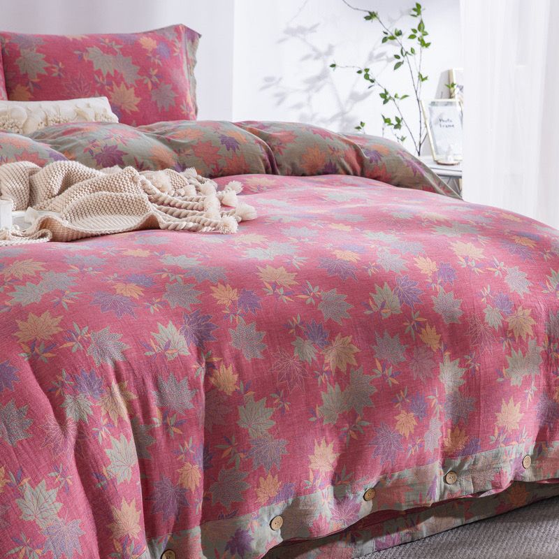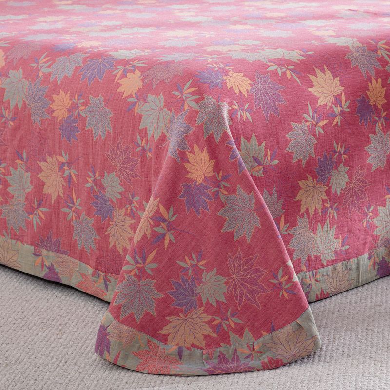 (总)双层纱家居 2026新款全棉纯棉色织提花拼角飞边款四件套-郁金花园正红,郁金花园正红