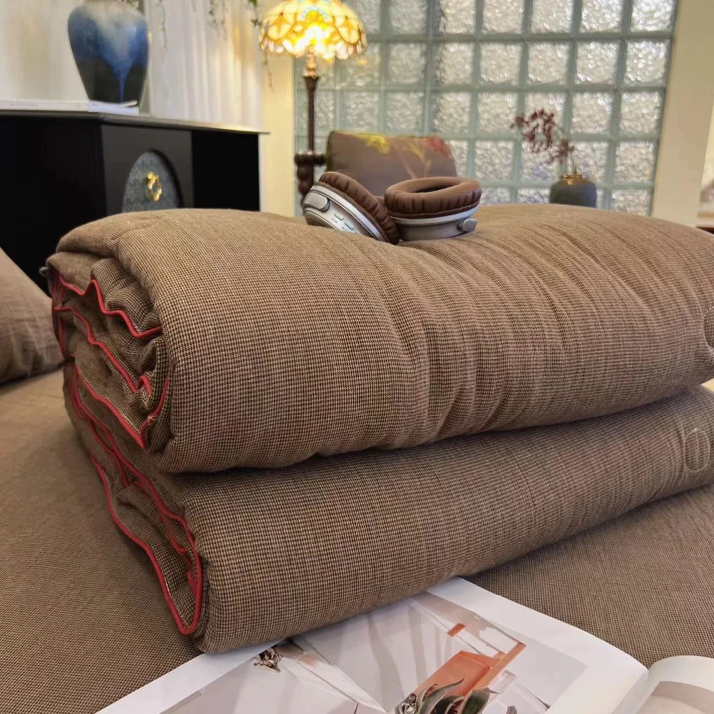 商品名称:双层纱家居 2025新款弥山AA版全棉色织提花双层纱春秋被冬被被子被芯 弥山-灰