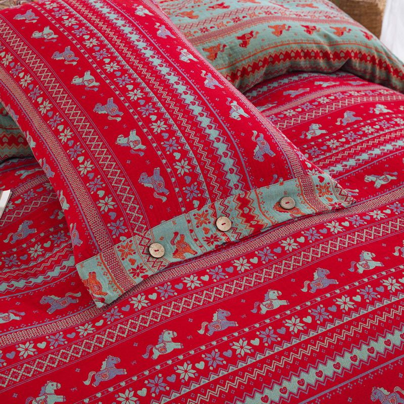 (总)双层纱家居 2026新款全棉纯棉色织双层纱纽扣款四件套-小马奔奔