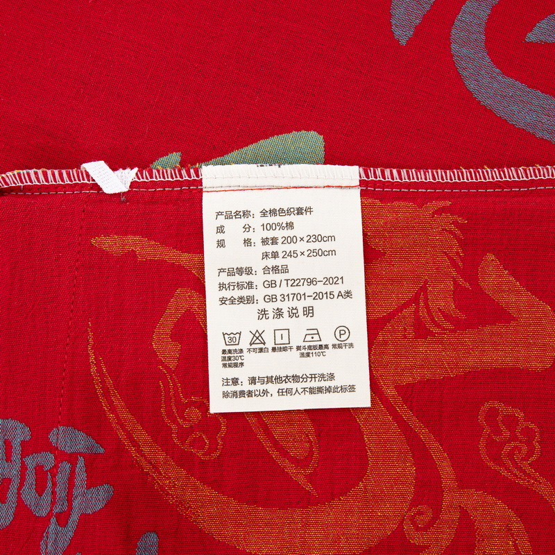 商品名称:(总)双层纱家居 2026新款马上暴富全棉纯棉色织提花双层纱纽扣款四件套