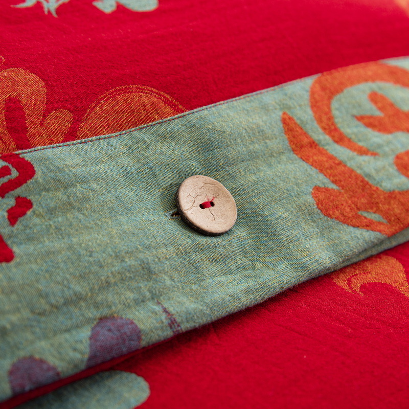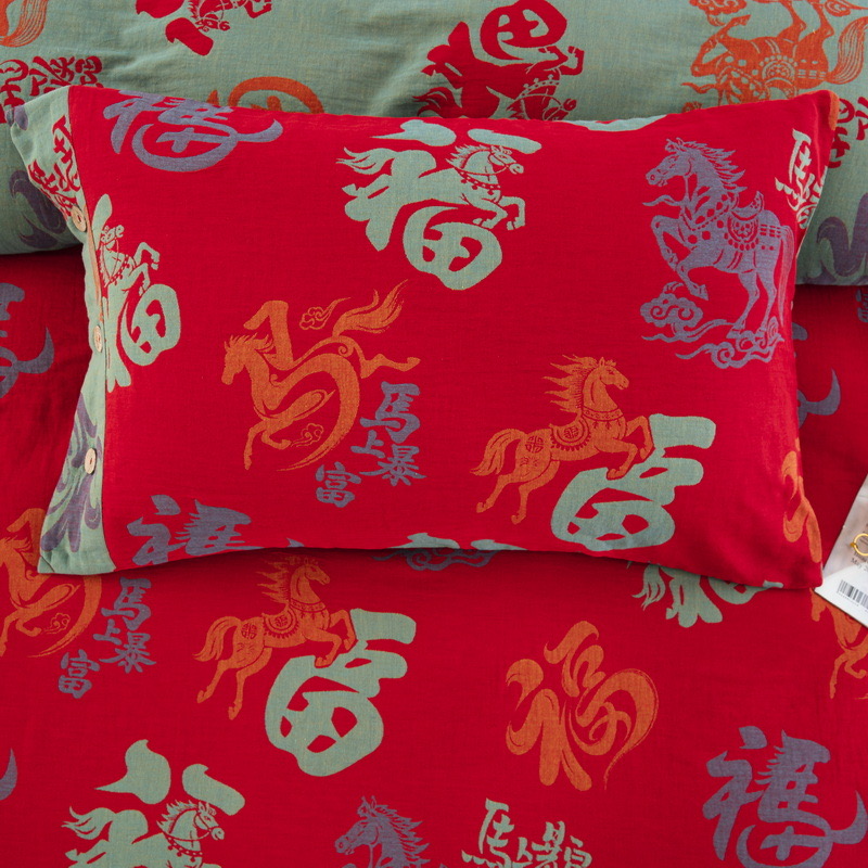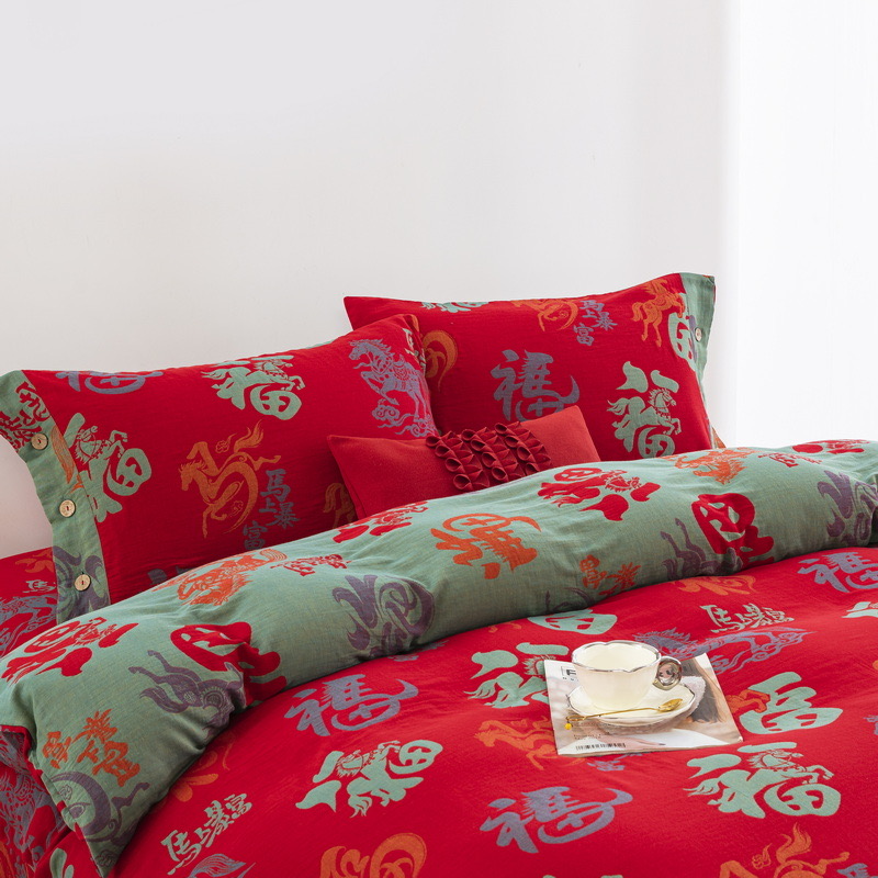 (总)双层纱家居 2026新款马上暴富全棉纯棉色织提花双层纱纽扣款四件套