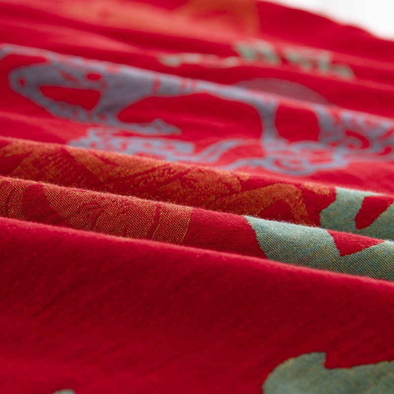 (总)双层纱家居 2026新款全棉纯棉色织提花拼角飞边款四件套-郁金花园正红,郁金花园正红