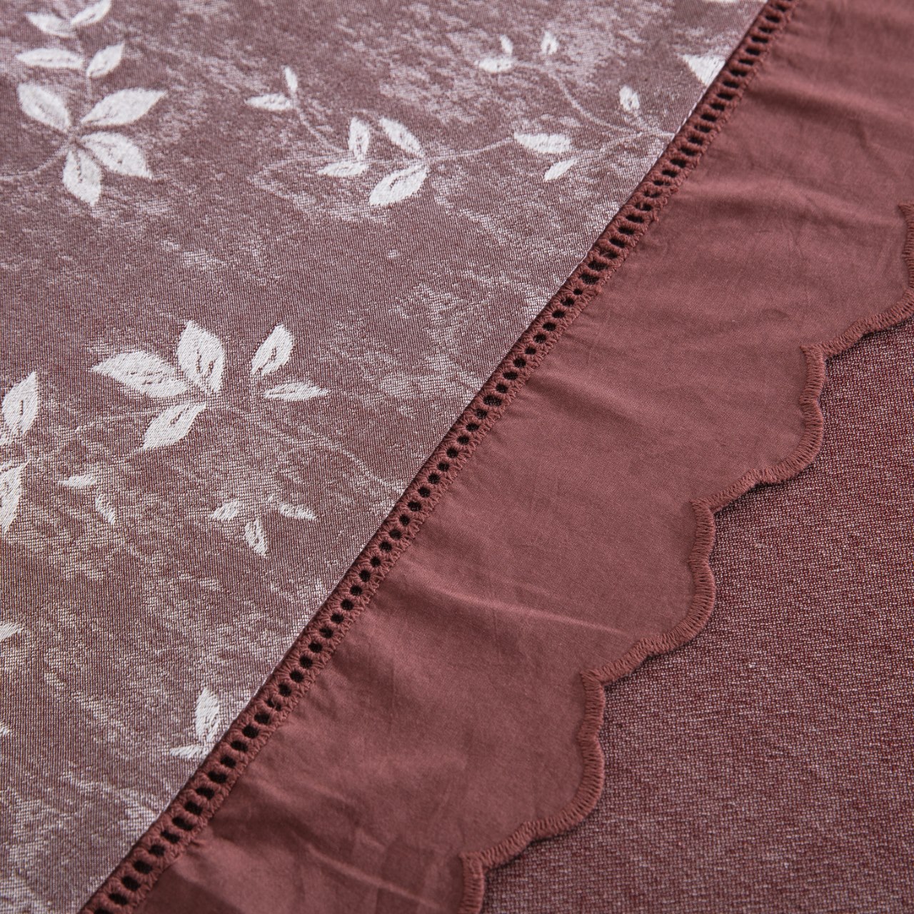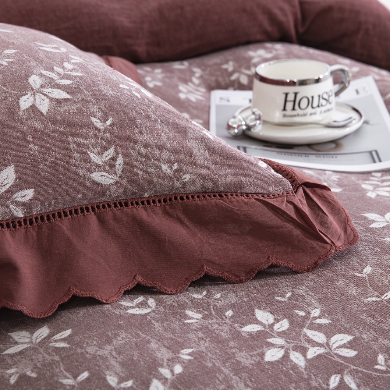 (总)双层纱家居 2026新款全棉纯棉色织提花拼角飞边款四件套-郁金花园正红,郁金花园正红