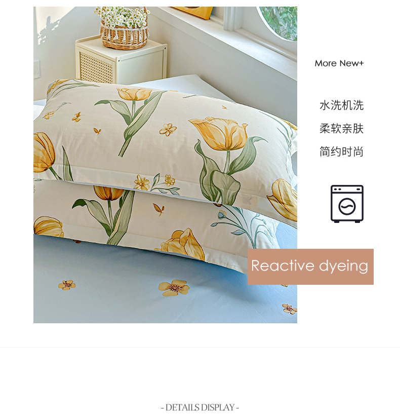 商品名称:恩泽家纺 2026新款13372ins全棉印花四件套单品系列-单枕套 沐浴暖阳