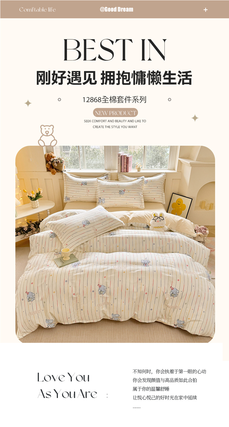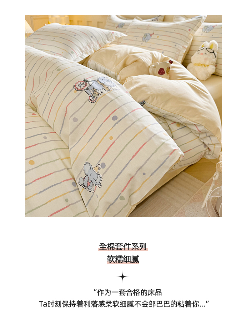 当前位置: 91家纺网 > 商品网购 > 床品套件 > 四件套 > 全棉普通四件套 > 简冠家纺 2026新款12868印花全棉四件套纯棉四件套 小飞象