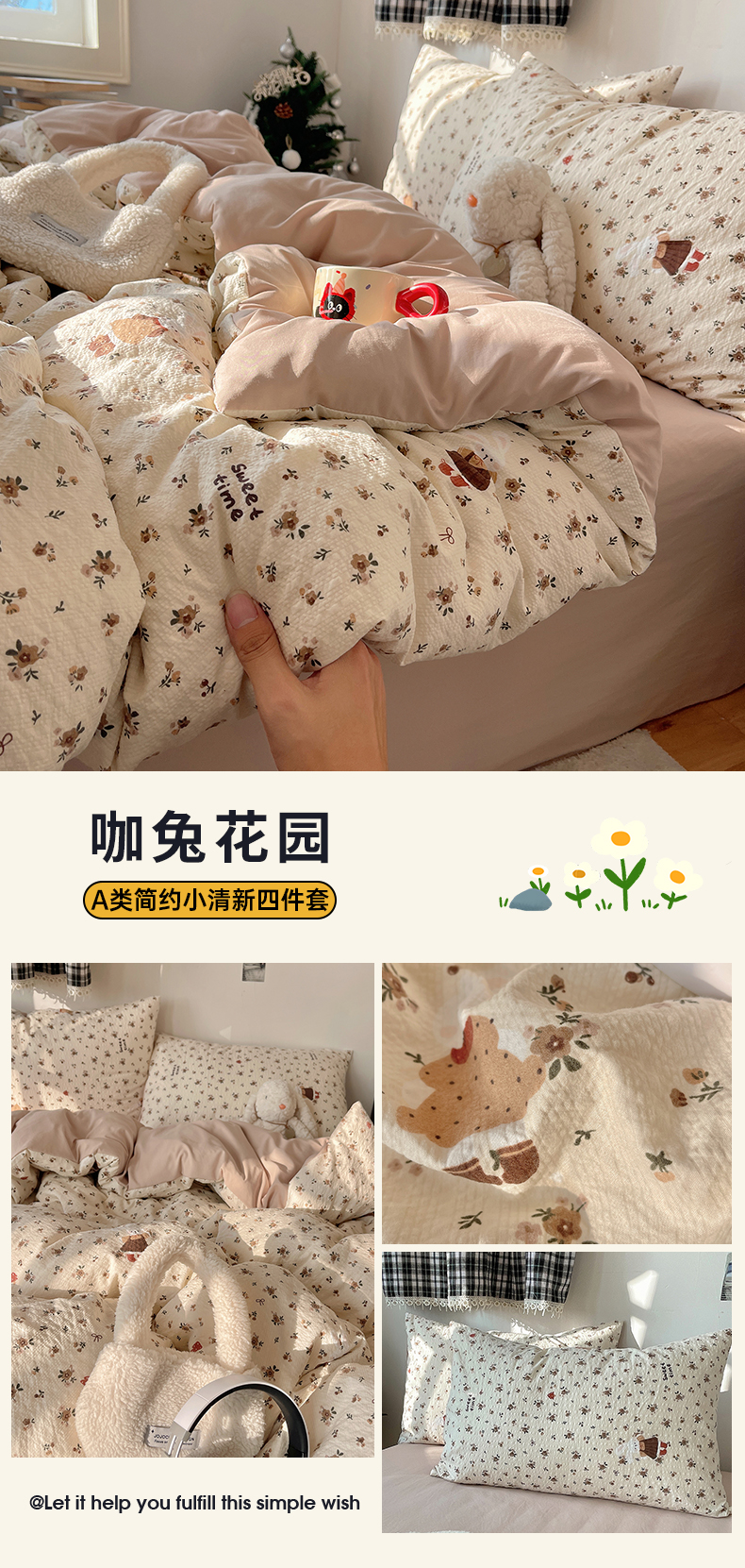 当前位置: 91家纺网 > 商品网购 > 床品套件 > 四件套 > 其它四件套 > 沐芷 2026 高克重110g泡芙棉四件套A类床上用品被套宿舍床单三件套【提供买家秀】 绵绵奶兔
