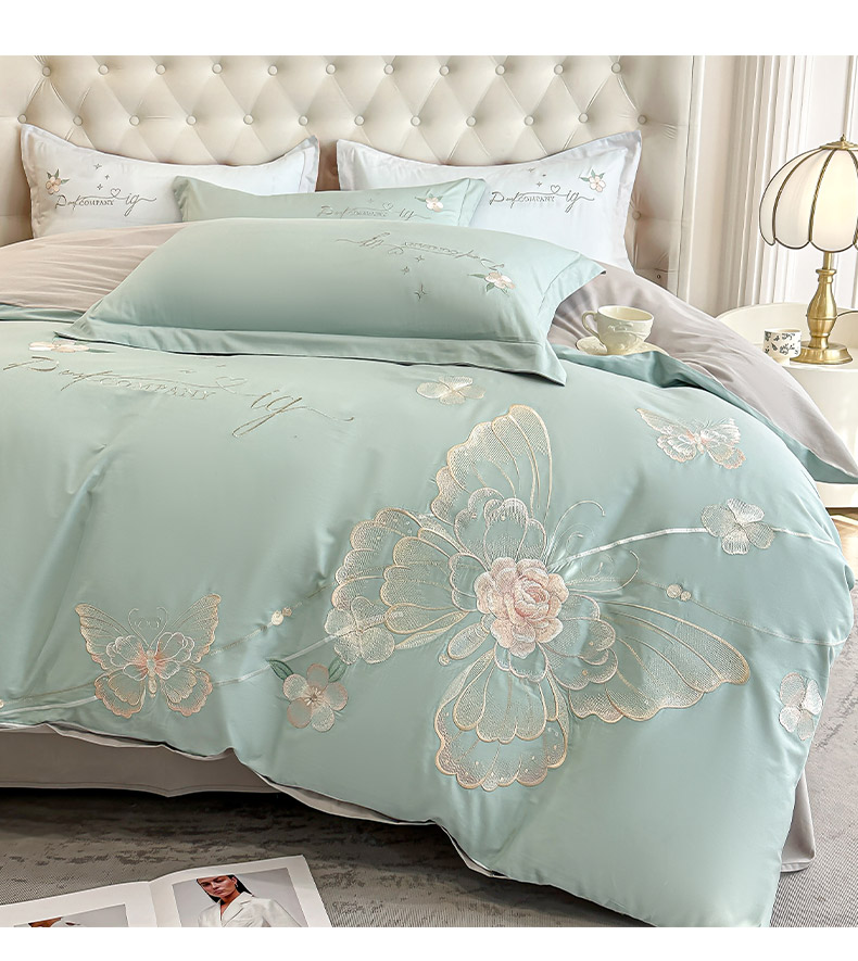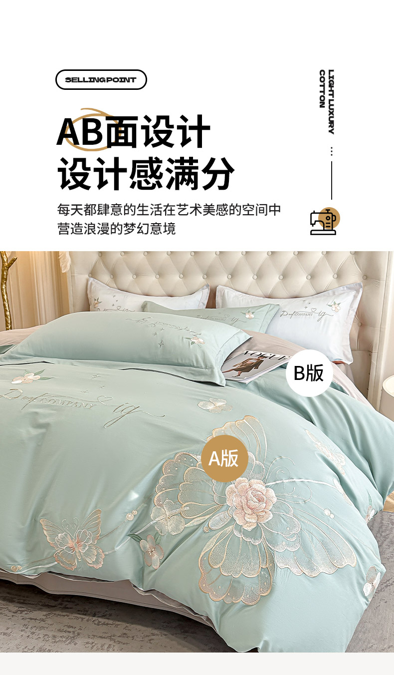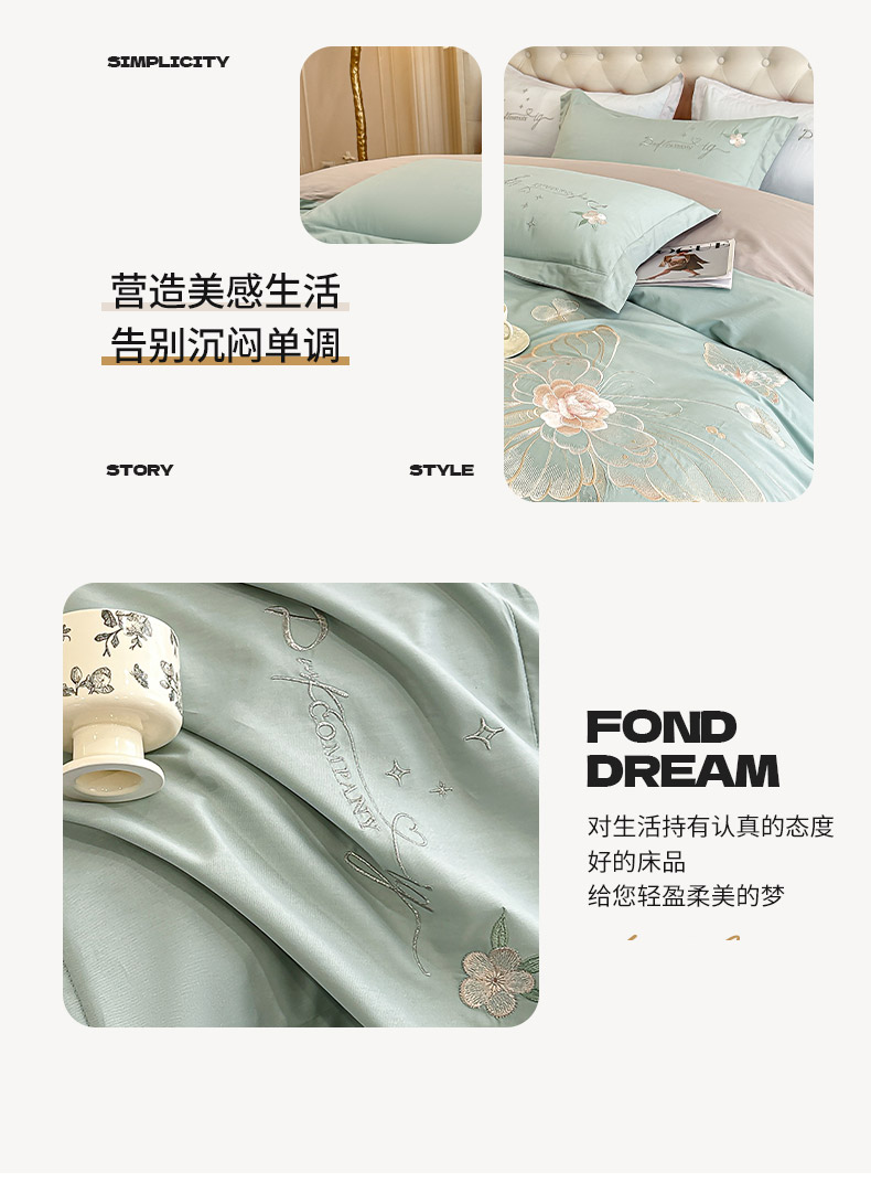(总)合欢(原天一阁) 2025新款A类高克重全消光韩版牛奶绒刺绣四件套-千姿,千姿 湖绿,千姿 浅豆沙,千姿 天蓝,千姿 原木色