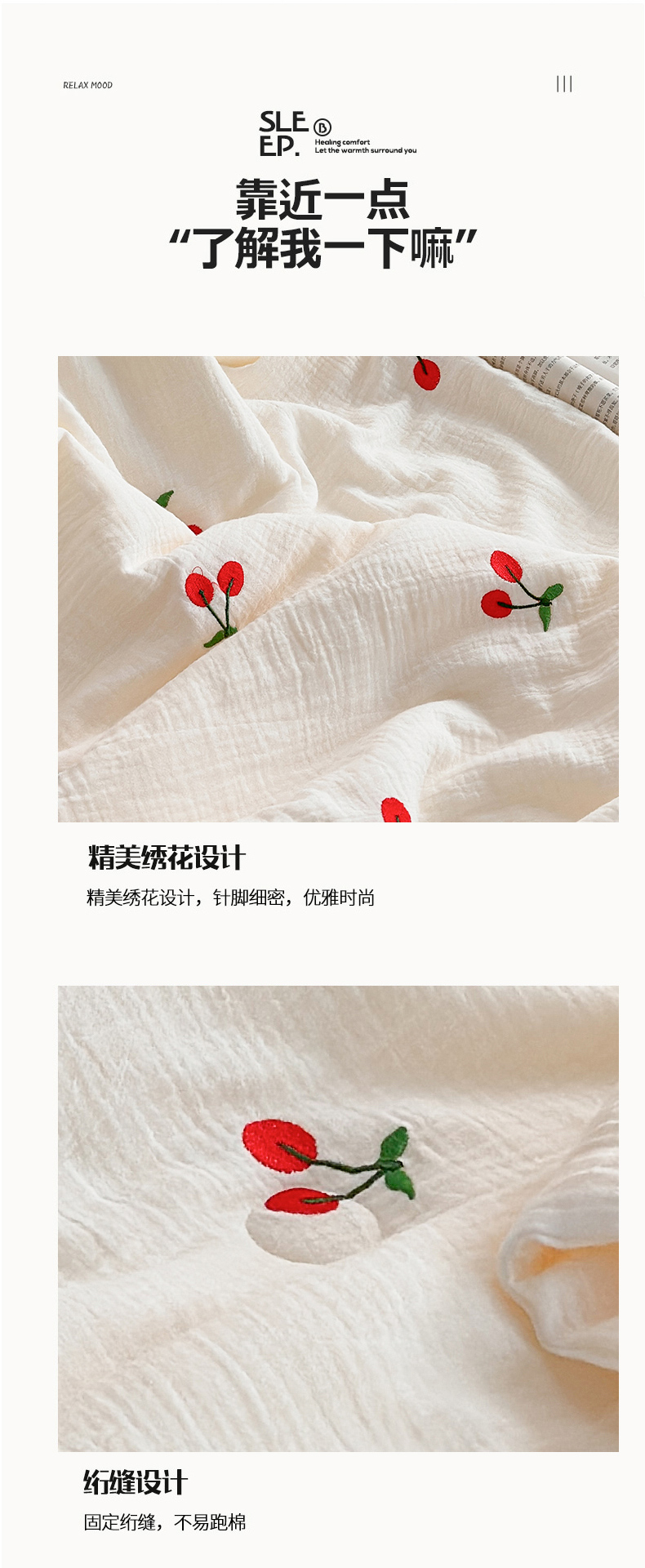 木楌家居 2026新款全棉皱皱纱刺绣款夏被床盖四件套 小樱桃