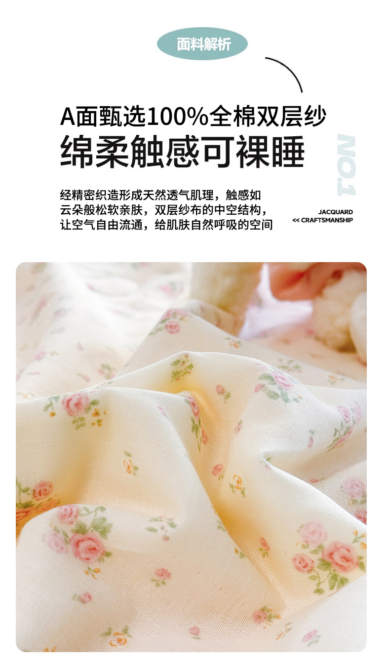 当前位置: 91家纺网 > 商品网购 > 床品套件 > 四件套 > 其它四件套 > 木楌家居 2026新款全棉纱布云感冰冰被床盖四件套系列 粉黛