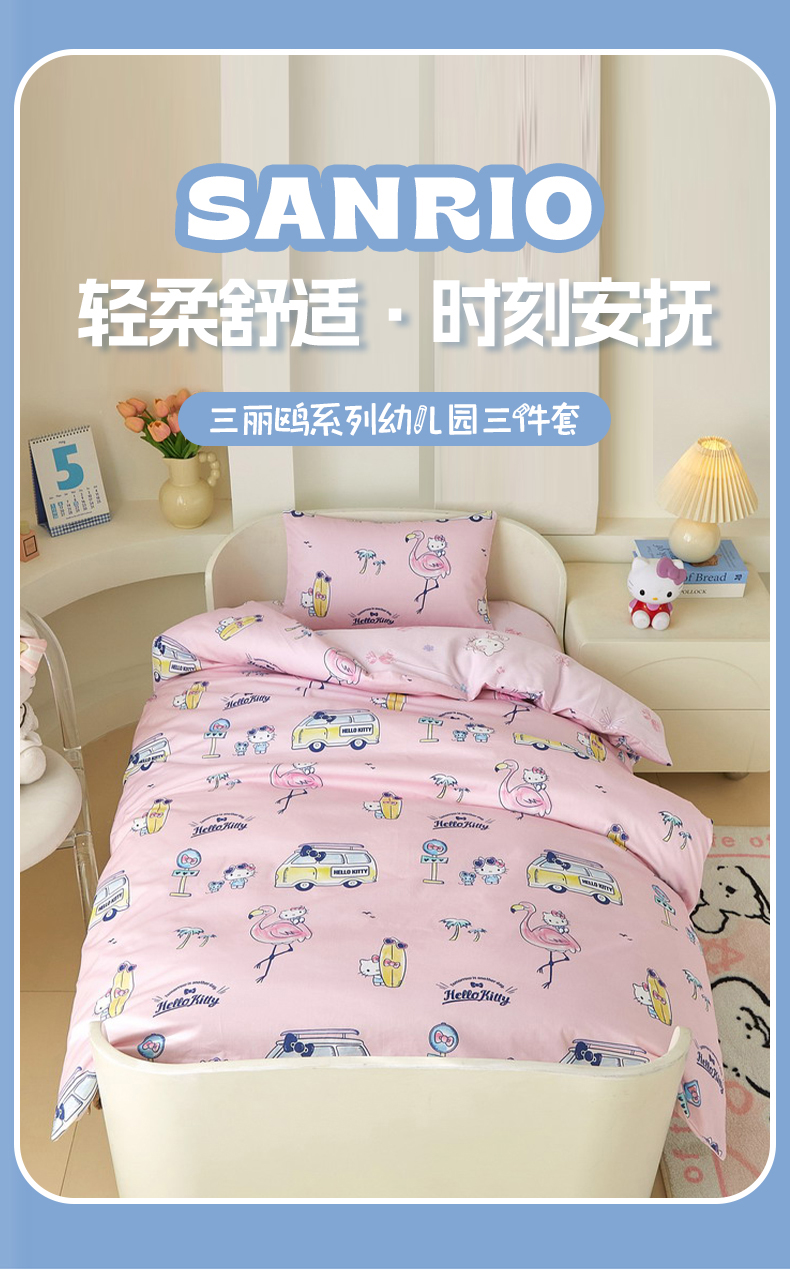 (总)蘭菲家纺 2026新款幼儿园儿童三丽欧系列多件套,必爱乐奶茶,波点KT,车站KT,大杯奶茶,逛街狗,精致狗狗,可爱KT灰,快乐小库,快乐休假,露营快乐,美乐必爱,轻松美乐蒂,涂鸦KT,夏日快乐,小库儿,小库故事