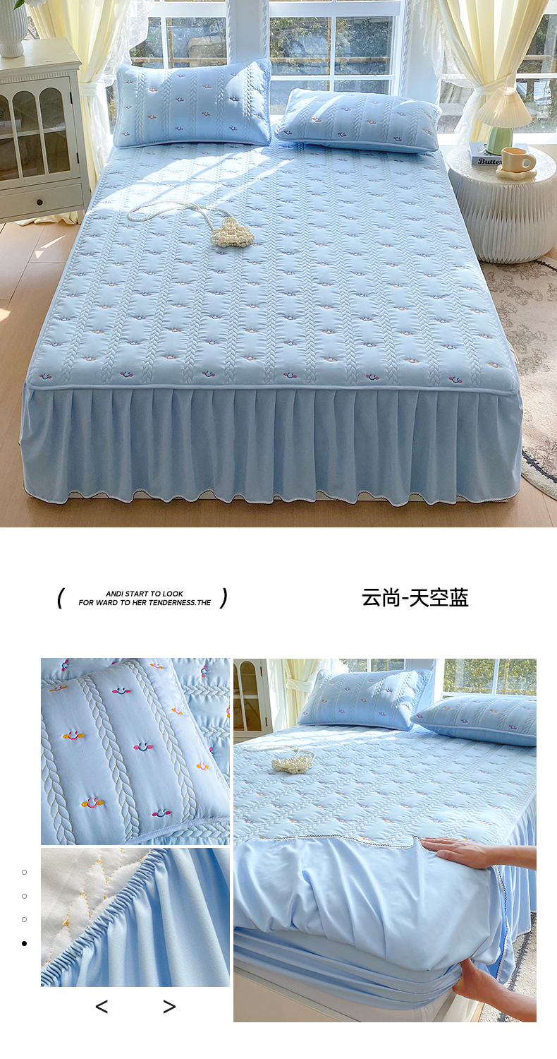 (总)尊康家纺(原磊科) 2026新款奶昔棉抗菌夹棉床裙款床笠-花语系列,花语-薄荷绿,花语-绅士灰,花语-天空蓝,花语-香槟,花语-粉玉,花语-米白