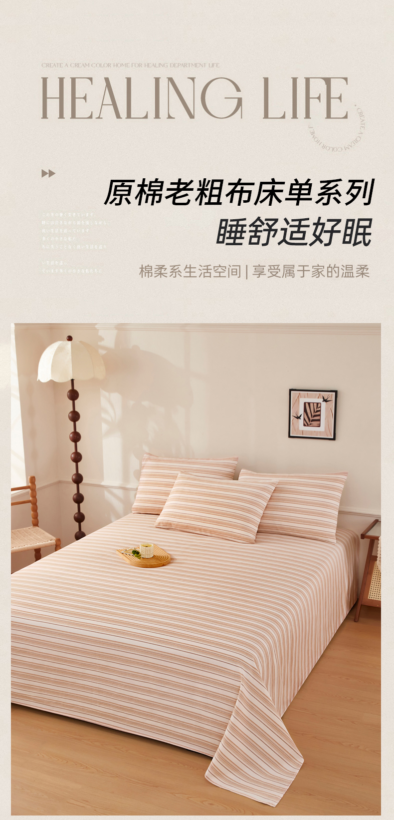 当前位置: 91家纺网 > 商品网购 > 床品套件 > 三件套 > 美丽折家纺 2026春夏新款原棉老粗布单床单床单单件床单三件套 条纹-粉
