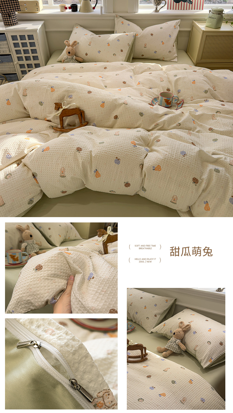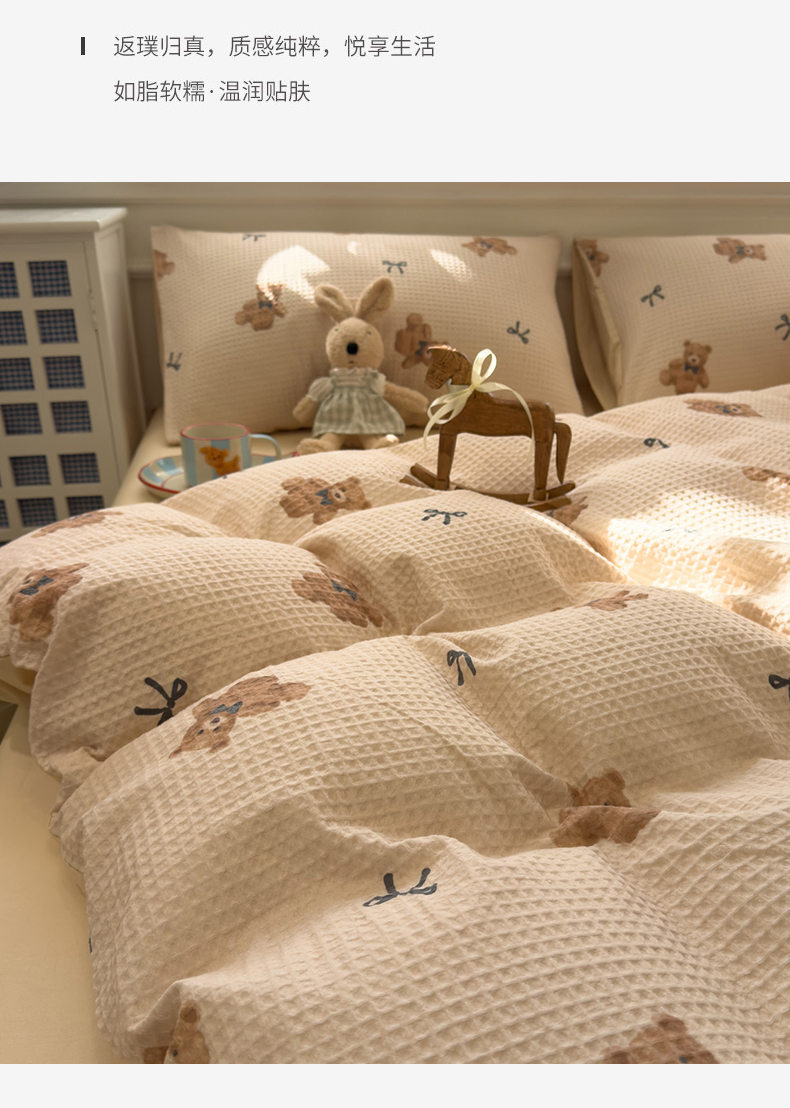 当前位置: 91家纺网 > 商品网购 > 床品套件 > 四件套 > 全棉普通四件套 > 眠博士 2026新款A类全棉印花华夫格工艺四件套 全棉华夫格-糯糯熊仔