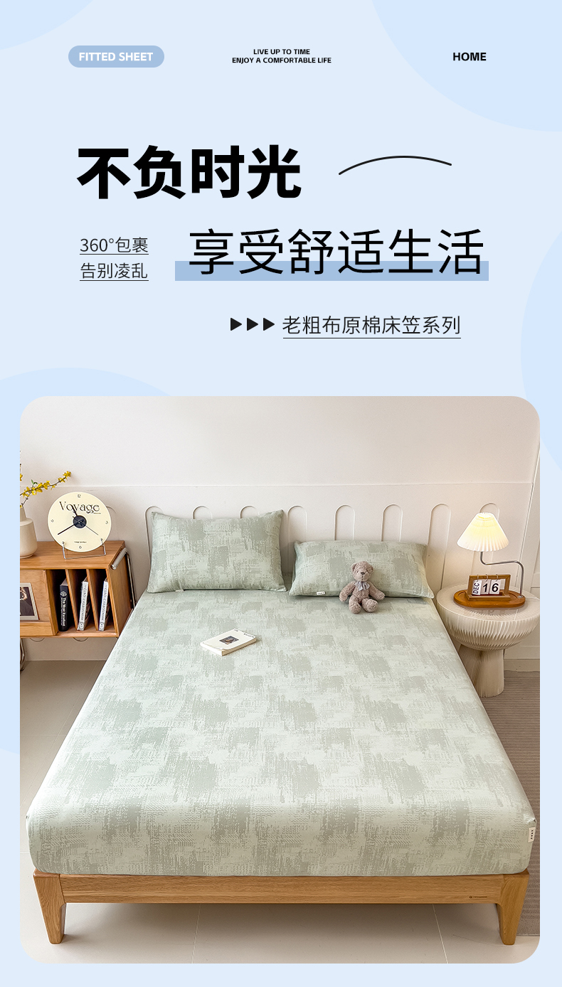 芃成家纺 2026新款老粗布单床笠 凡克-绿