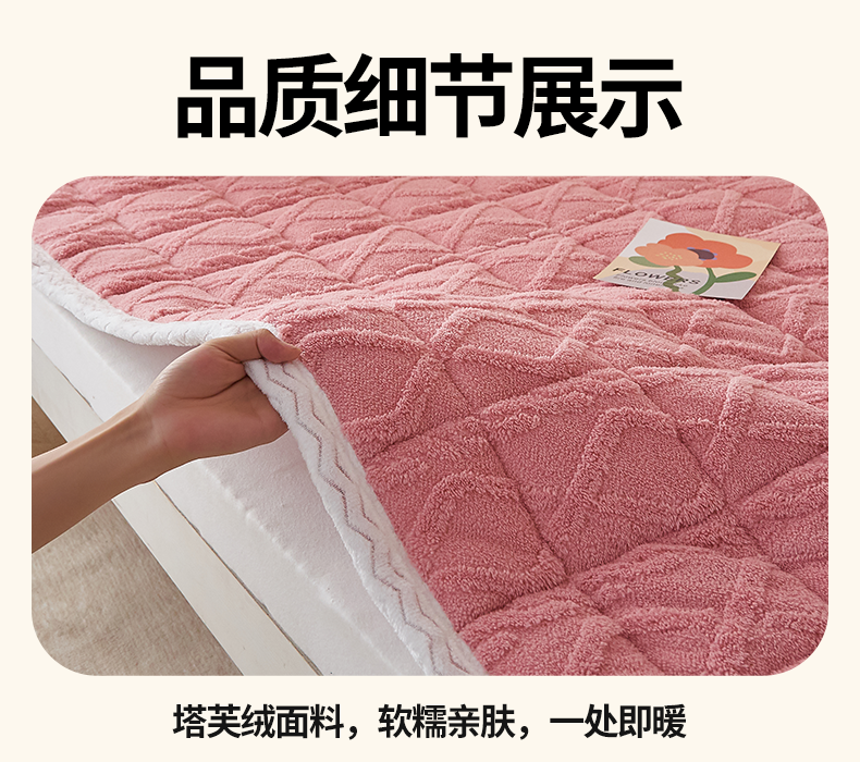 当前位置: 91家纺网 > 商品网购 > 床垫/床褥 > 普通床垫 > 月茶家纺 2026新款塔芙绒无胶棉磨毛床护垫--学生款 豆沙粉