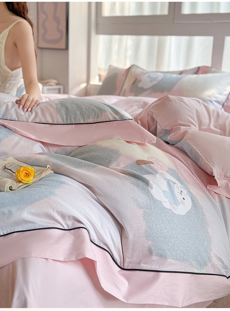 当前位置: 91家纺网 > 商品网购 > 床品套件 > 四件套 > 全棉普通四件套 > 7V 2026新款嵌绳宽边纯棉四件套13376全棉小清新喷气宽幅长绒棉被套床单床笠套件 七彩兔