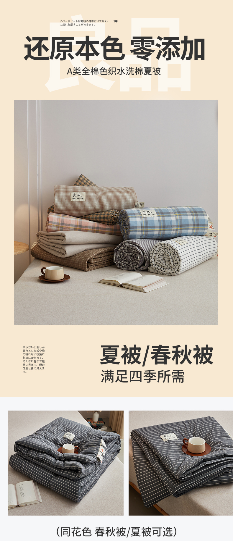 (总)尊妙被业 2026新款全棉色织水洗棉春秋被夏被-叠拍,春野-咖,灰细条,乐事-兰,乐事-绿,蜜格-灰,蜜格-米,莫妮-兰,莫妮-玉,沐妍-黄,千鸟格-灰,千鸟格-驼,童话-粉,晚晴-红,晚晴-咖