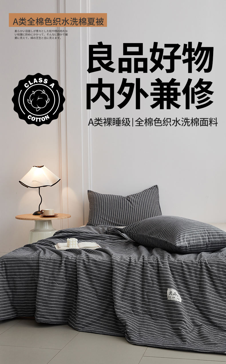 • 91家纺网 家纺一手货源 找家纺 尊妙被业 2026新款全棉色织水洗棉春秋被夏被-叠拍 灰细条