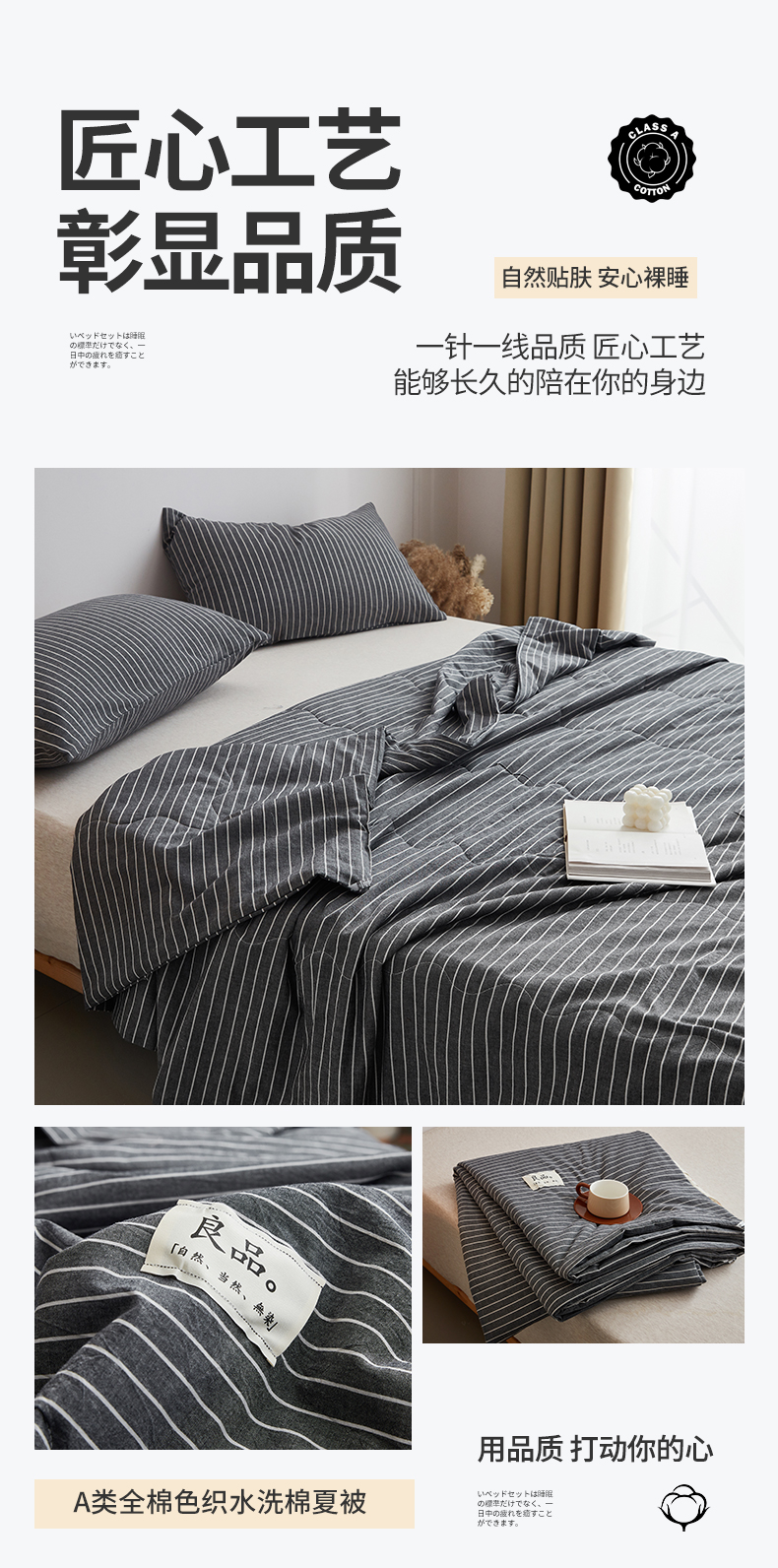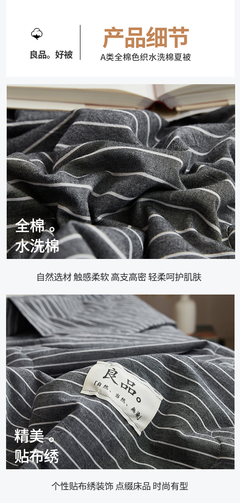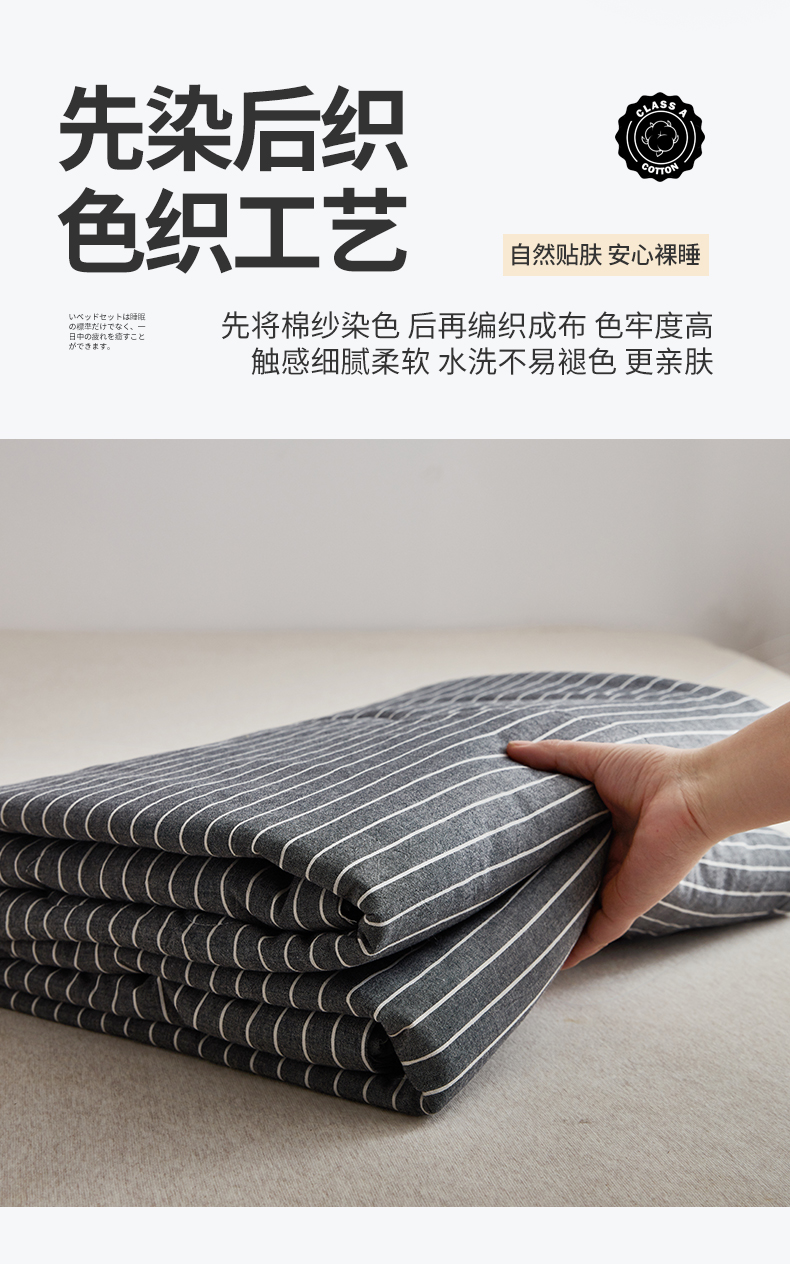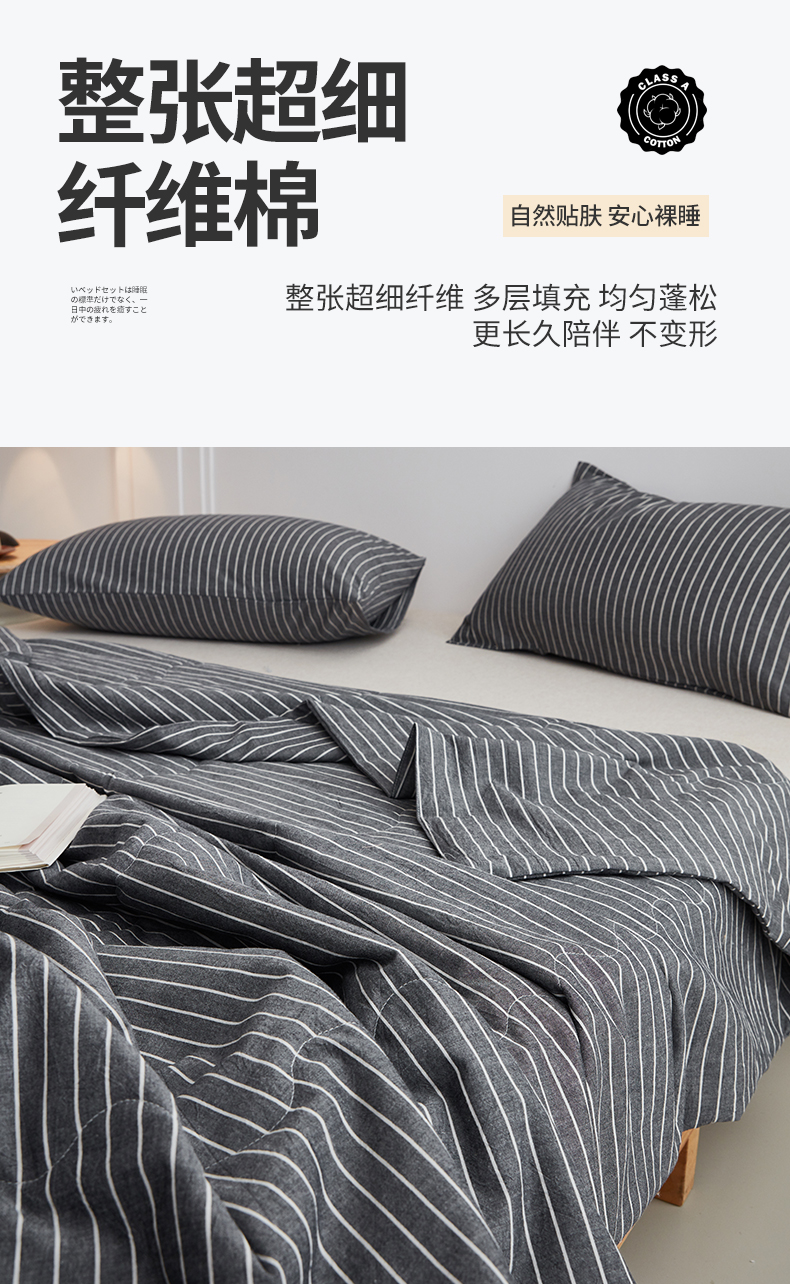 尊妙被业 2026新款全棉色织水洗棉春秋被夏被-叠拍 灰细条