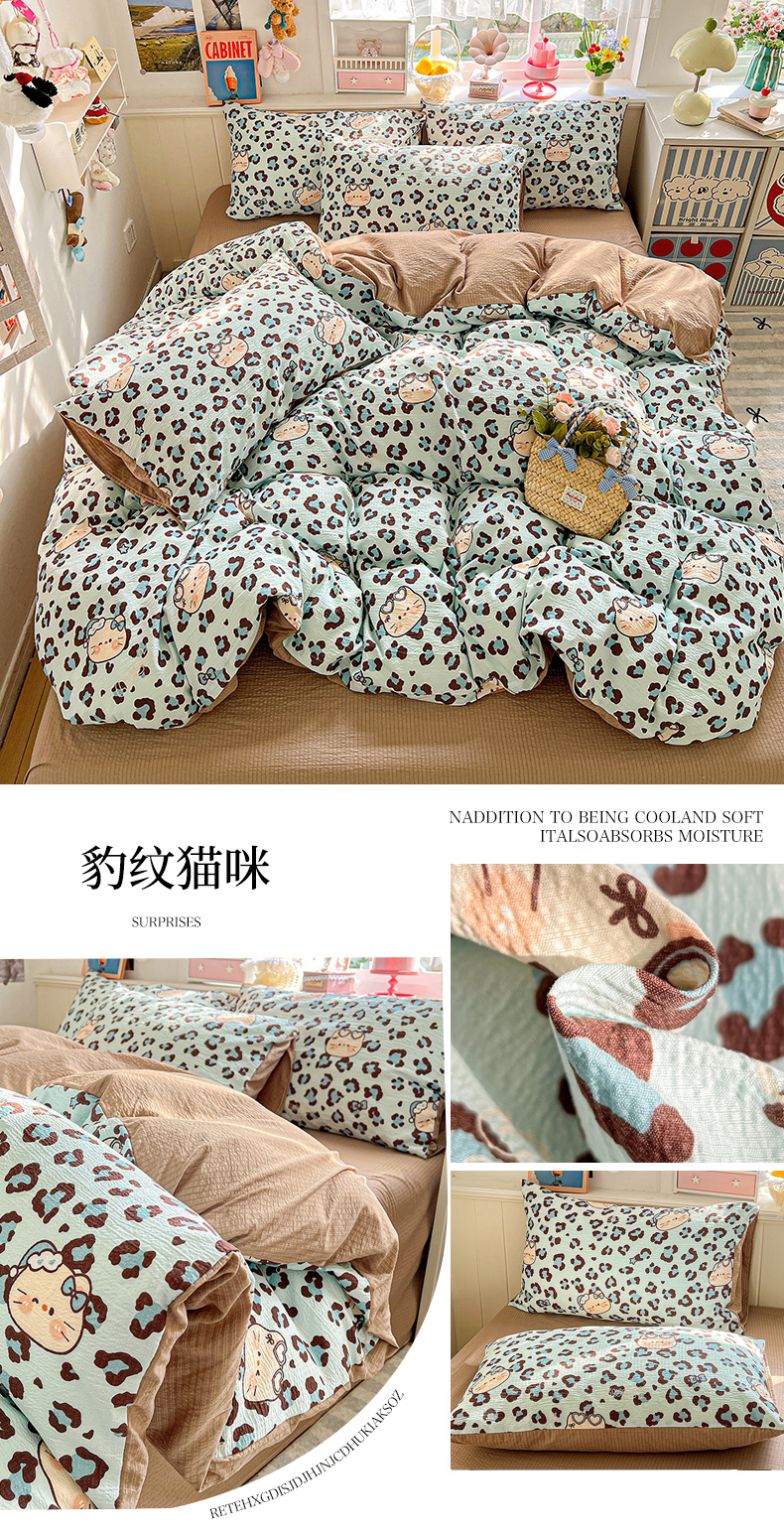 当前位置: 91家纺网 > 商品网购 > 床品套件 > 四件套 > 双层纱四件套 > N先生+V 13814689556 发大图/买家秀 2026春夏新款泡芙云感双层纱四件套 豹纹猫咪