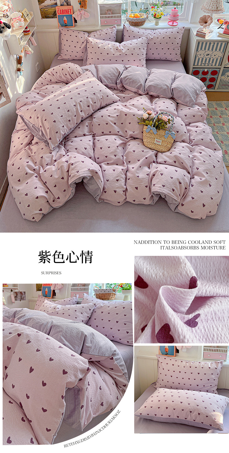当前位置: 91家纺网 > 商品网购 > 床品套件 > 四件套 > 双层纱四件套 > N先生+V 13814689556 发大图/买家秀 2026春夏新款泡芙云感双层纱四件套 紫色心情