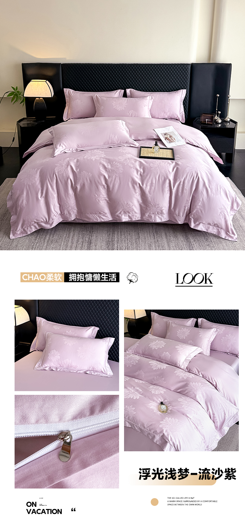 森林雨 【翡-鎏光】2026高端双股50S新疆长绒棉提花埋绳工艺款四件套 浮光浅梦-流沙紫
