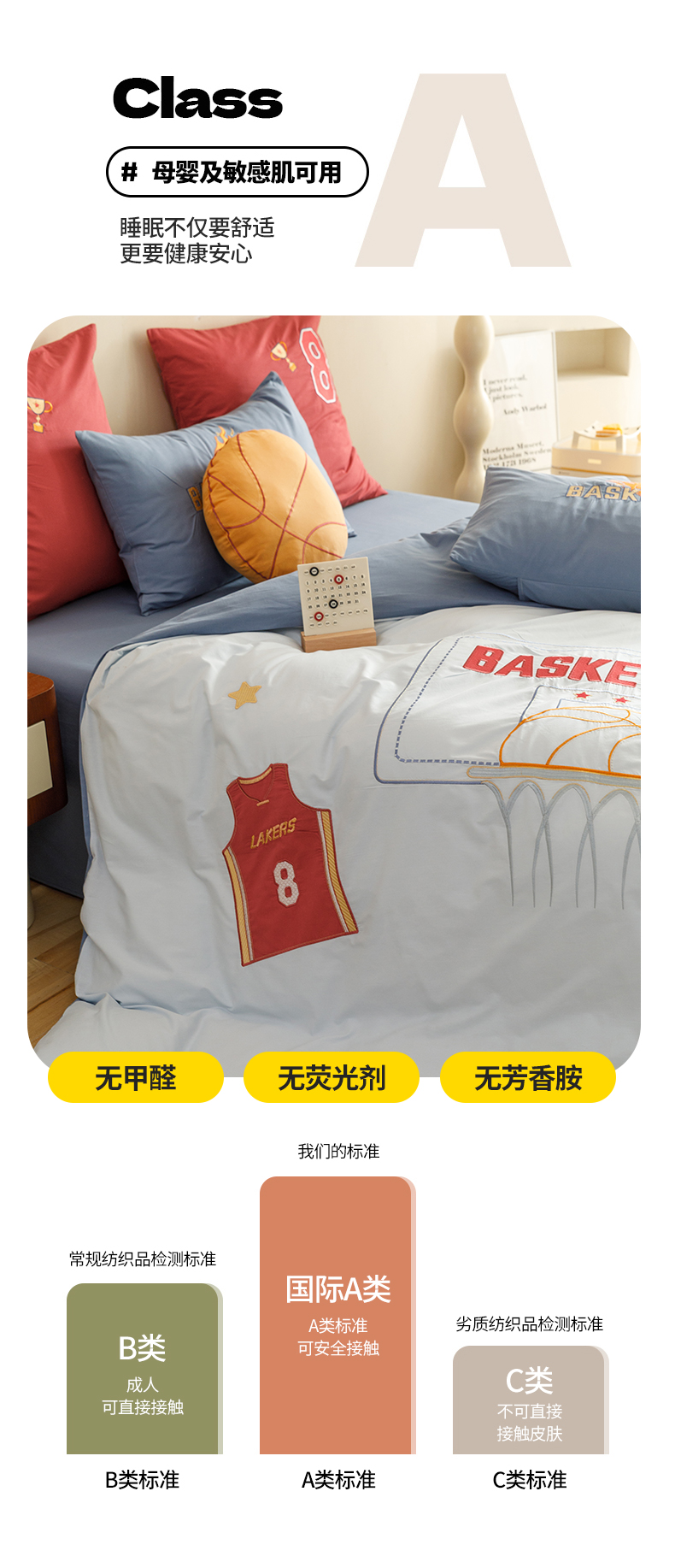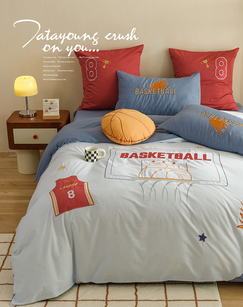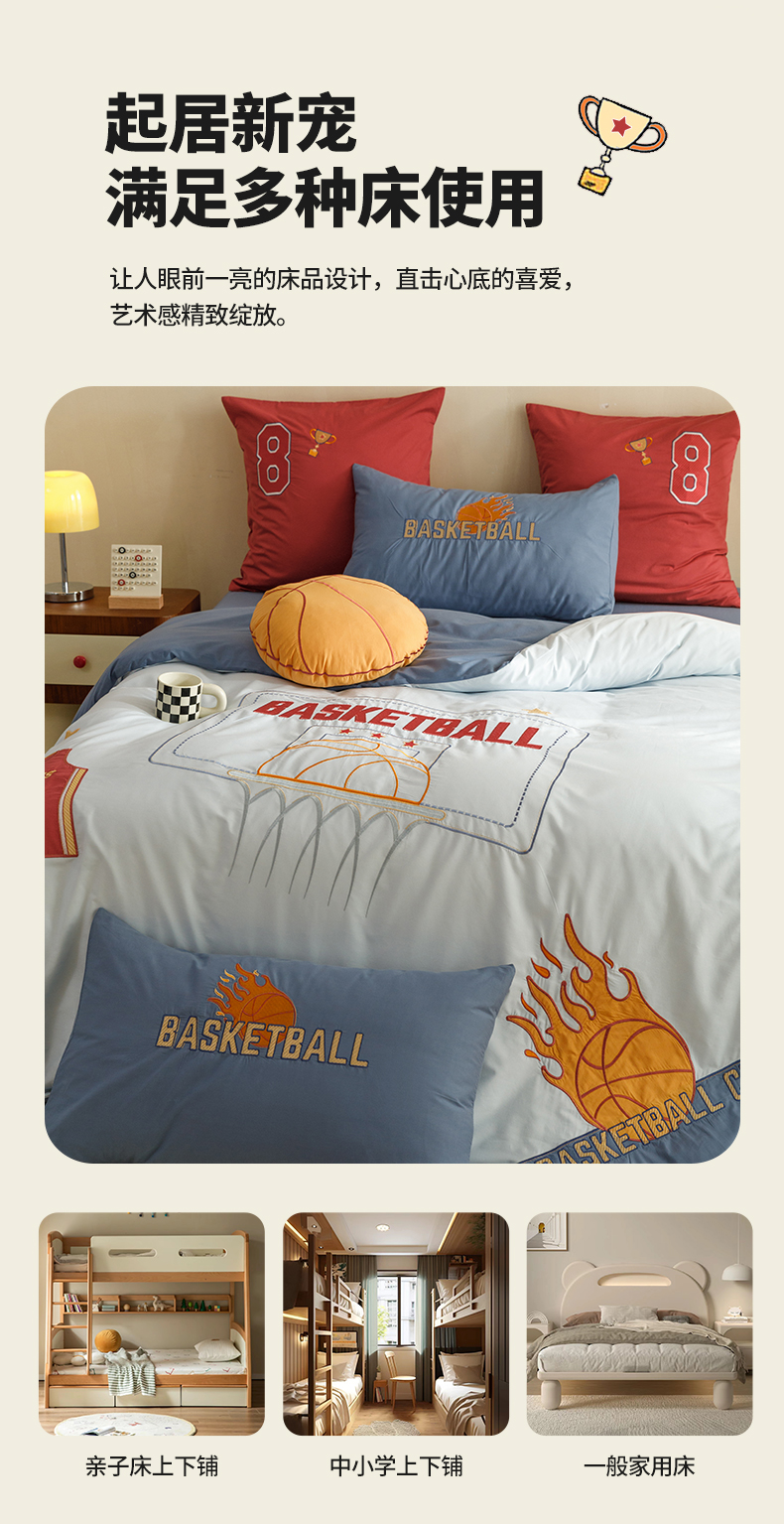 (总)绒梦里2025款A类纯棉水洗棉贴布绣四件套全棉卡通儿童三件套上下铺床套件--篮球系列,挚爱篮球-米色,挚爱篮球-浅蓝,挚爱篮球-英伦蓝