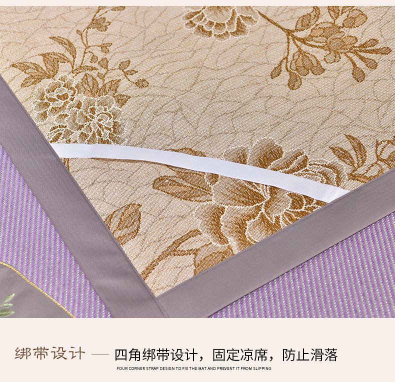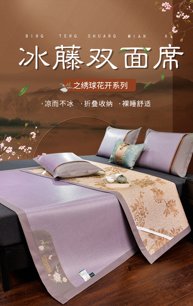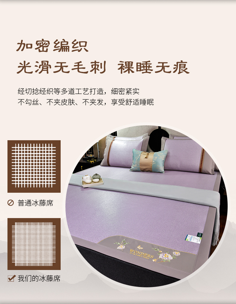 商品名称:小牛席业 2026新款绣球花开-冰藤双面席凉席藤席冰藤席竹席空调席草席冰丝席豆豆席乳胶席三件套 绣球花开-冰藤浅紫