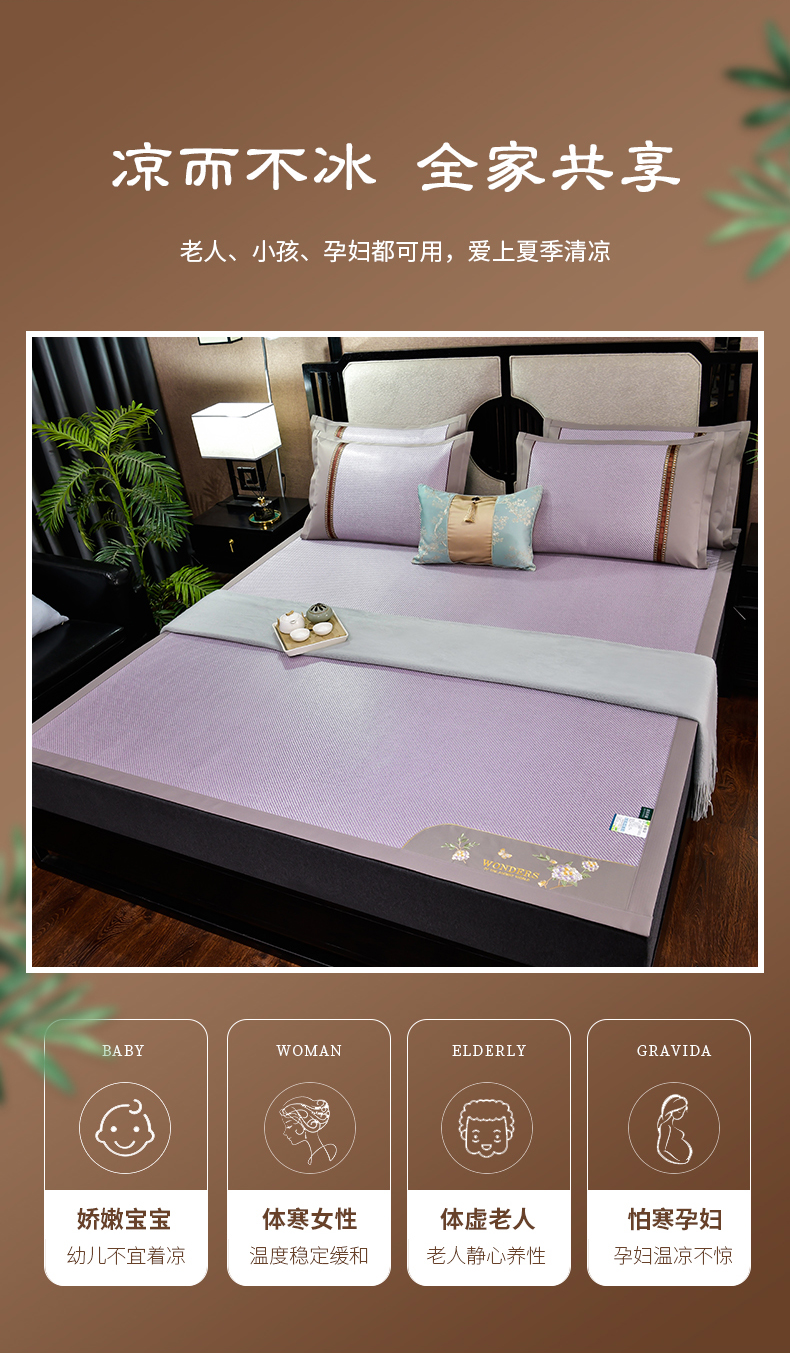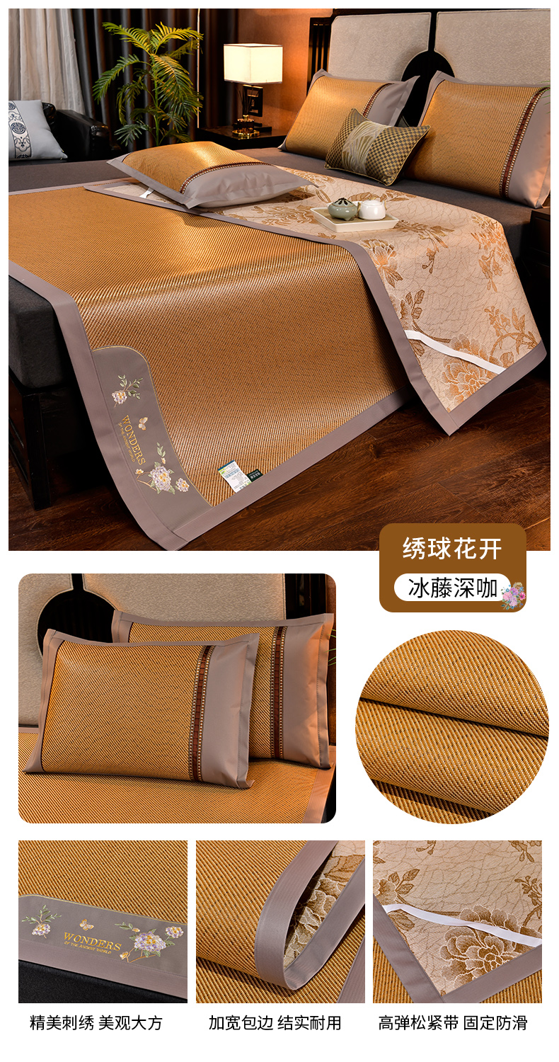 2023新款夏日冰点-冰藤双面席凉席藤席竹席冰丝席乳胶席,咖色,蓝色,绿色,香槟