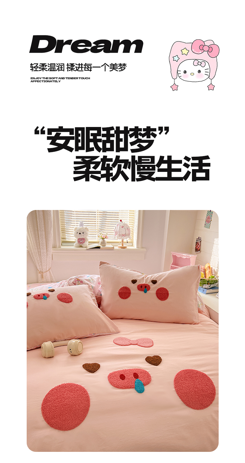 当前位置: 91家纺网 > 商品网购 > 床品套件 > 四件套 > 水洗棉四件套 > (总)颜选 2026春夏新款卡通款水洗棉毛巾绣四件套-猪猪