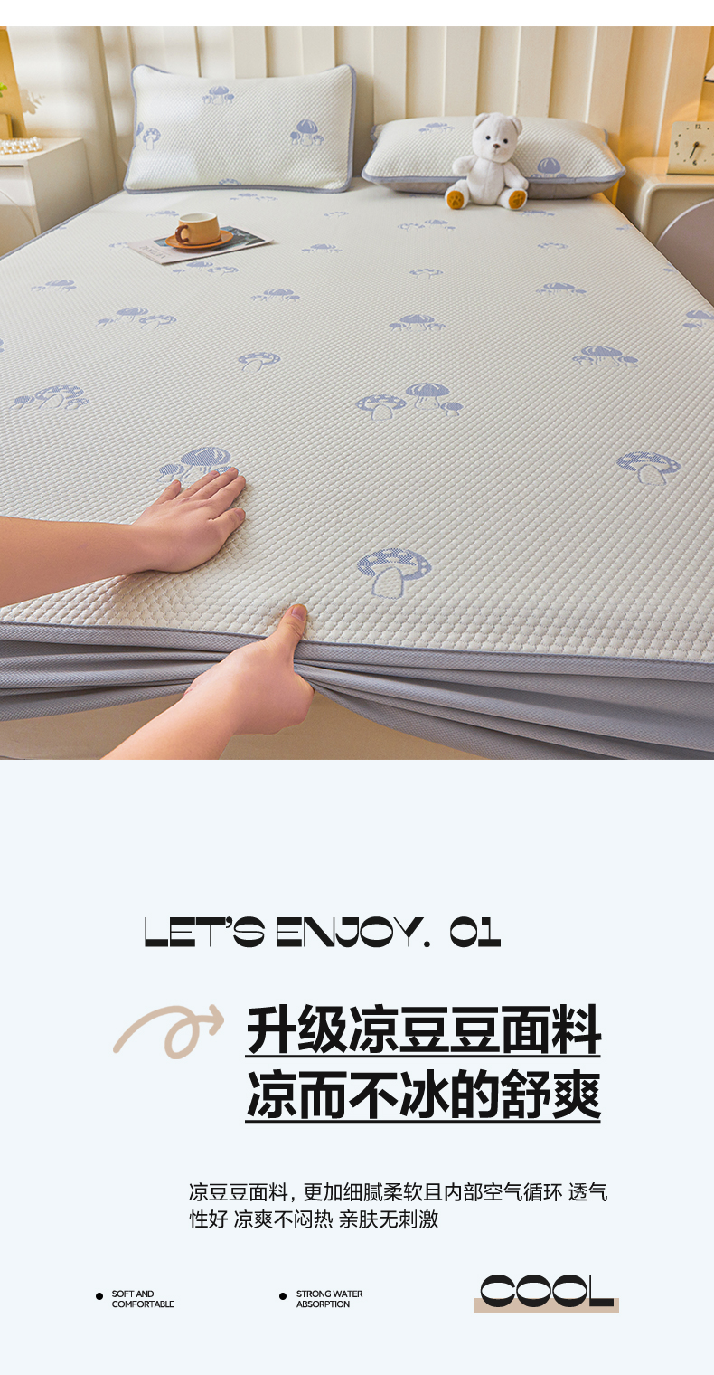 商品名称:凯罗 2026春夏凉豆豆小红书爆款A类乙纶PE凉豆豆床笠款可水洗床笠 蘑菇屋-蓝