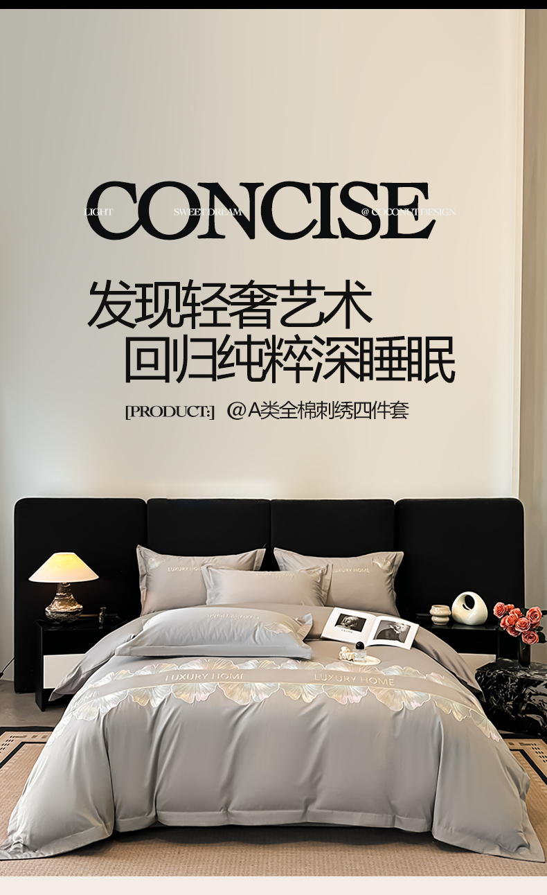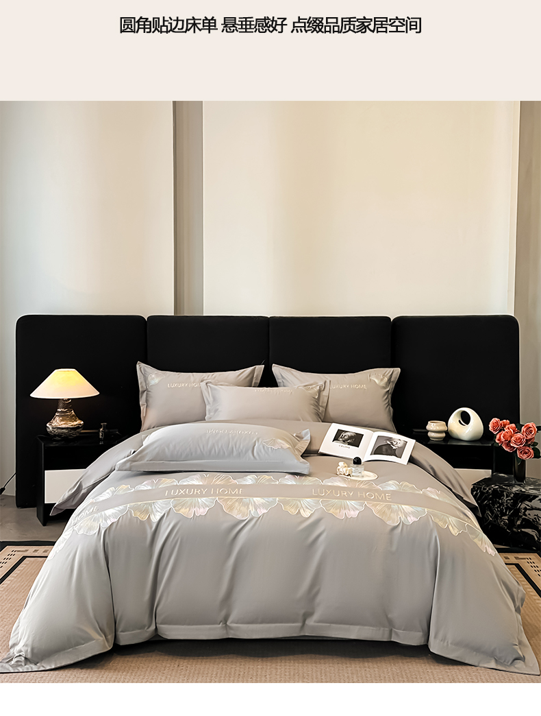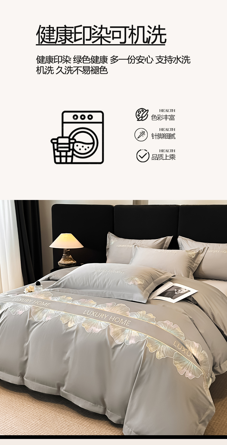当前位置: 91家纺网 > 商品网购 > 床品套件 > 四件套 > 全棉普通四件套 > 润锦云 2026新款A类全棉纯棉刺绣四件套-花漾 花漾-星辰灰