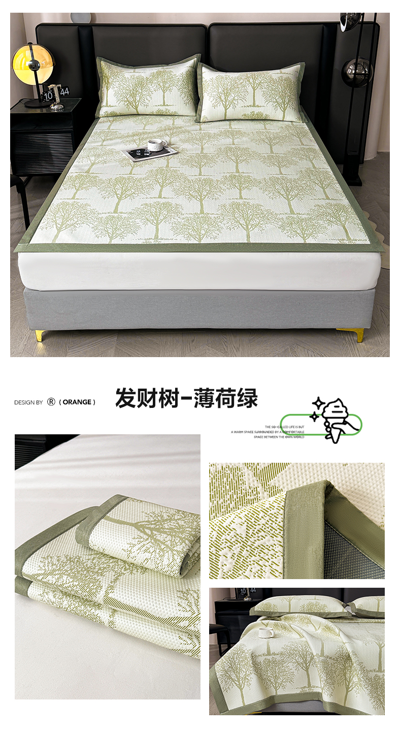 商品名称:凯罗 2026新款凉豆豆简约时尚风凉感豆豆凉席床席床笠-床席款 发财树-奶咖