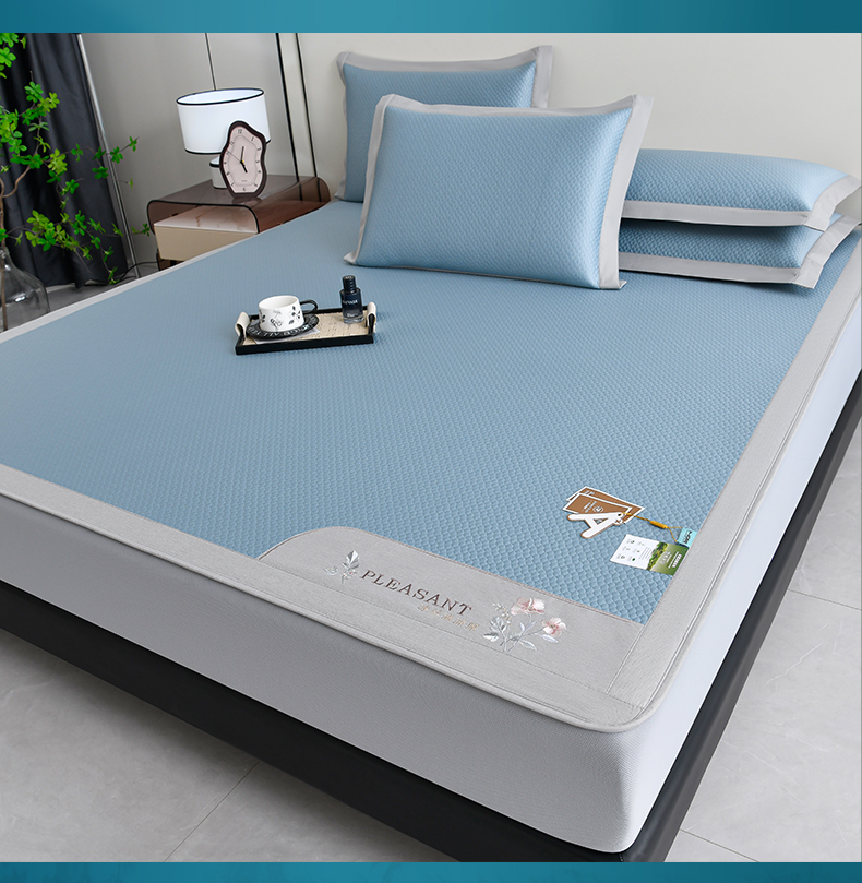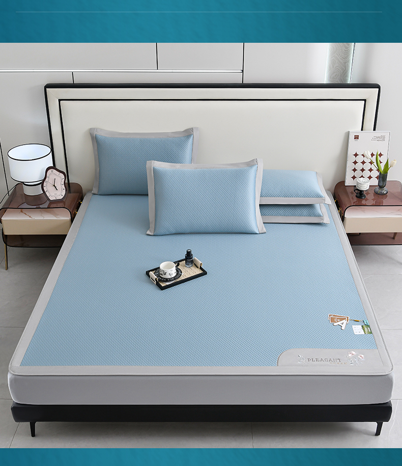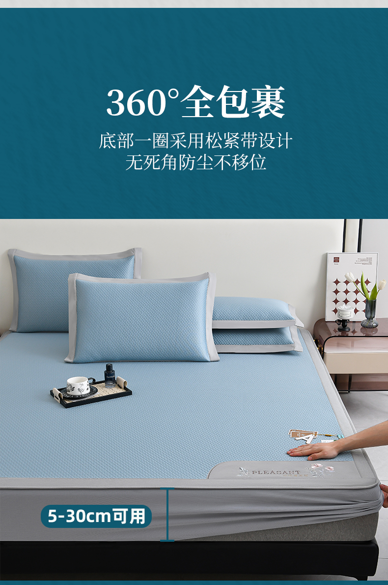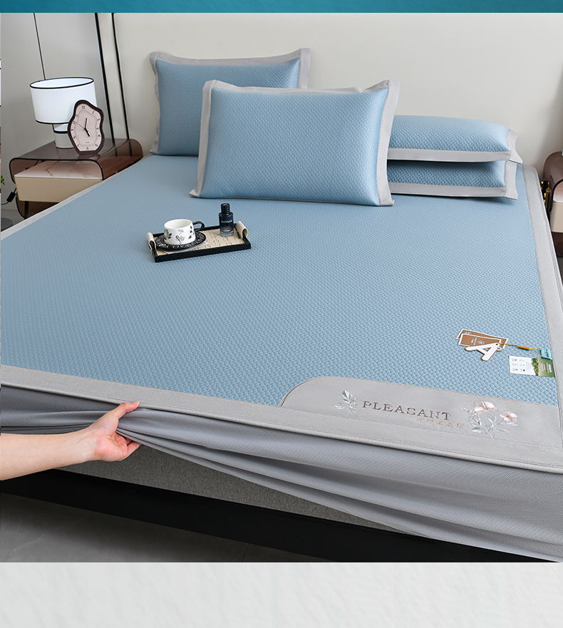 (总)2023新款超精密冰丝席-小斜纹系列-床笠款藤席凉席竹席,粉色,蓝色,绿色,银灰