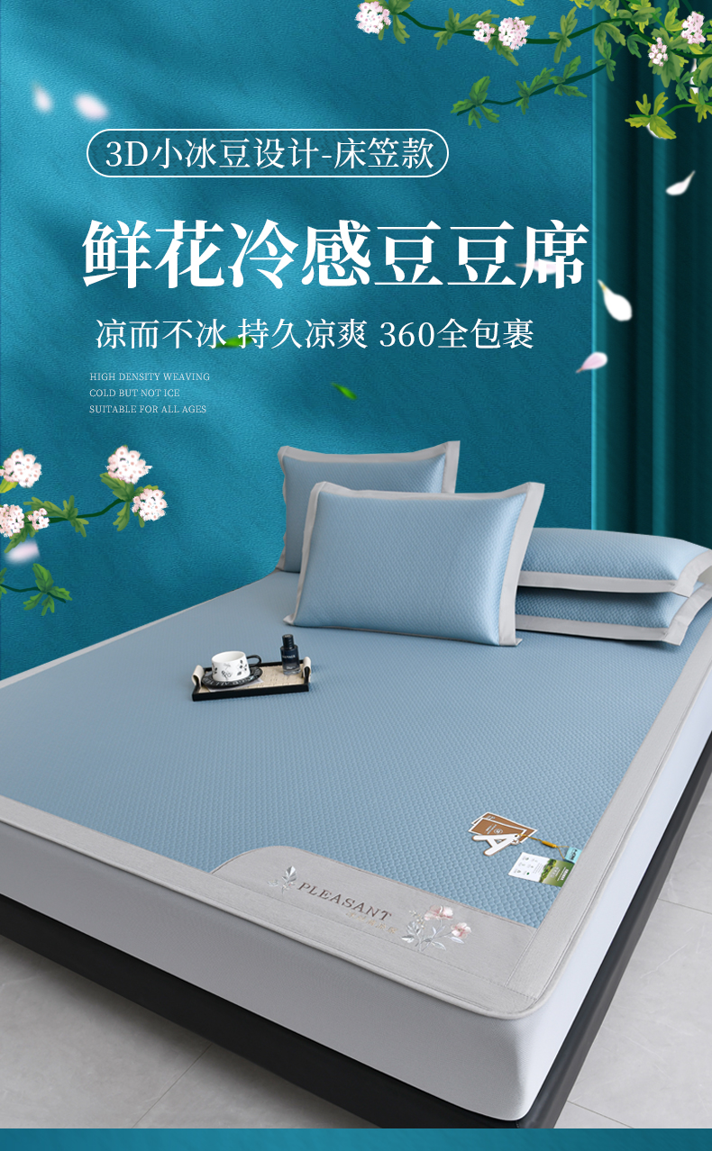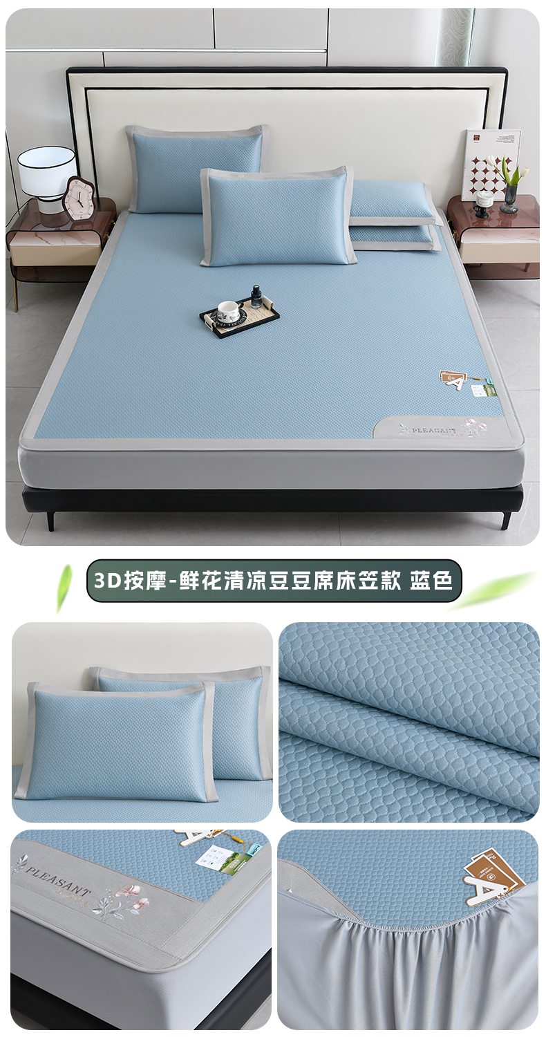 商品名称:小牛席业 2026新款3D按摩-鲜花清凉豆豆席系列(床笠款)藤席冰藤席冰丝席可机洗凉感冰丝席豆豆席PE霸王藤席 蓝色