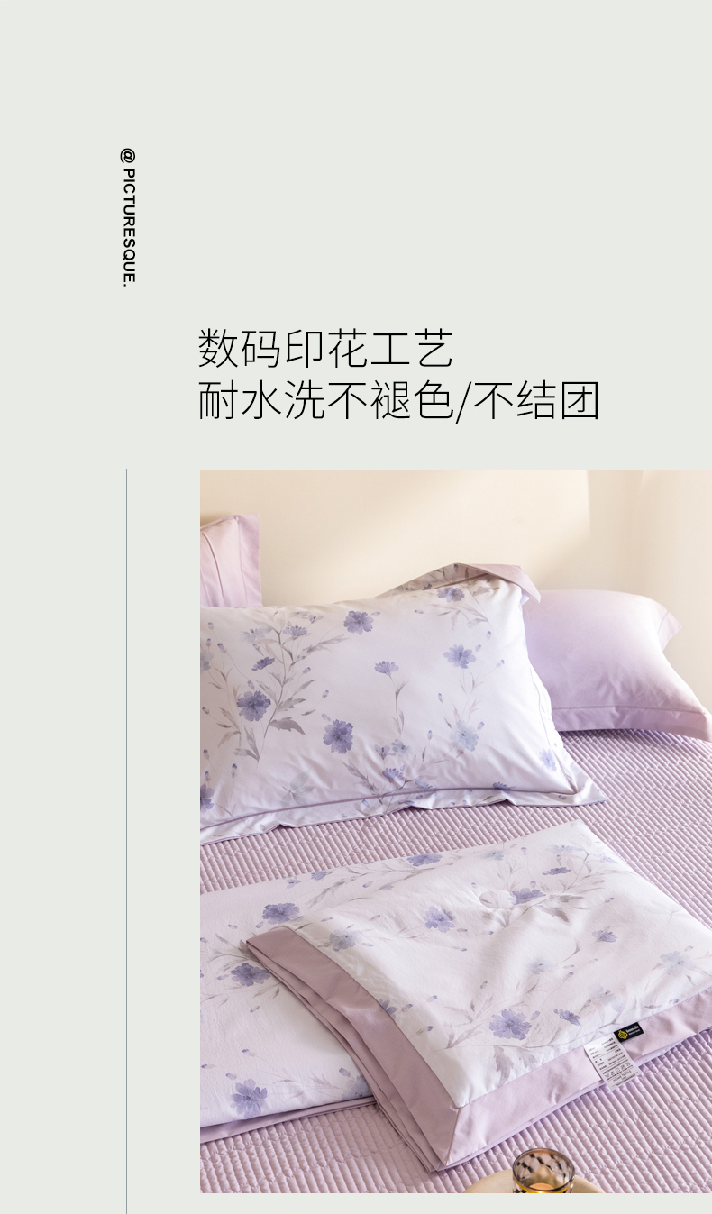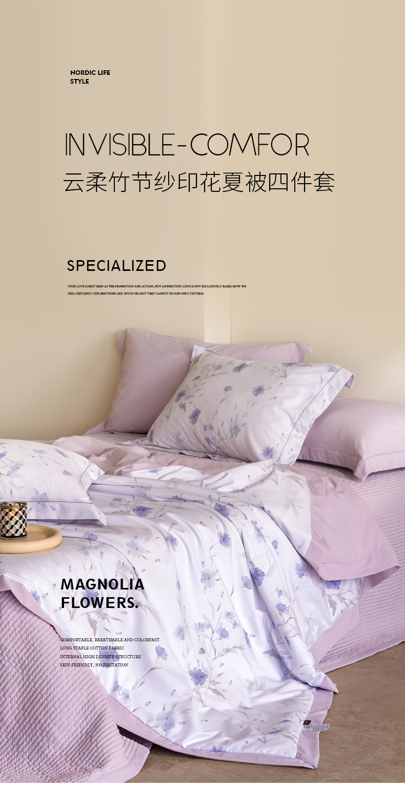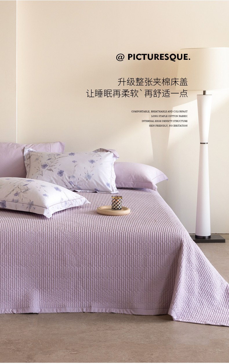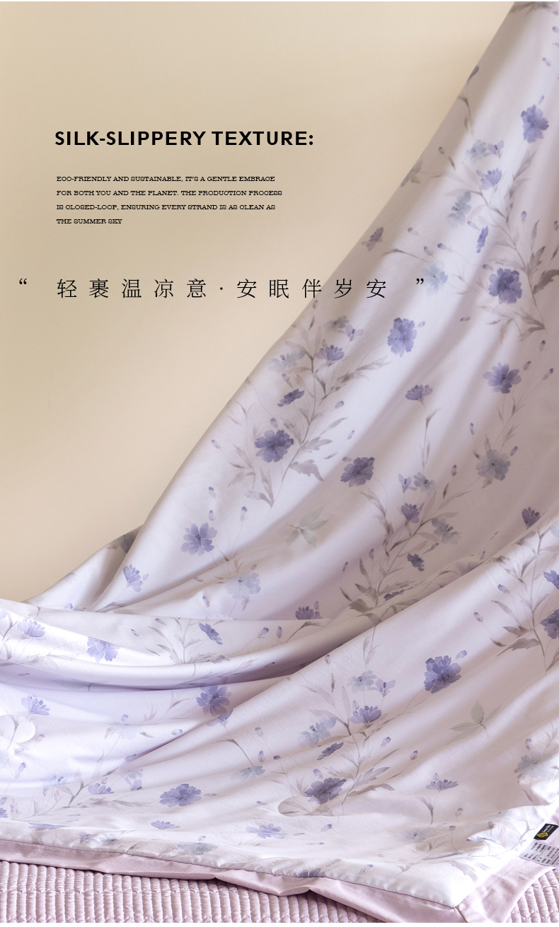 • 91家纺网 家纺一手货源 找家纺 立奥被业 2026新品冰丝棉夏被四件套竹节纱夏被四件套 翠韵春晓-紫
