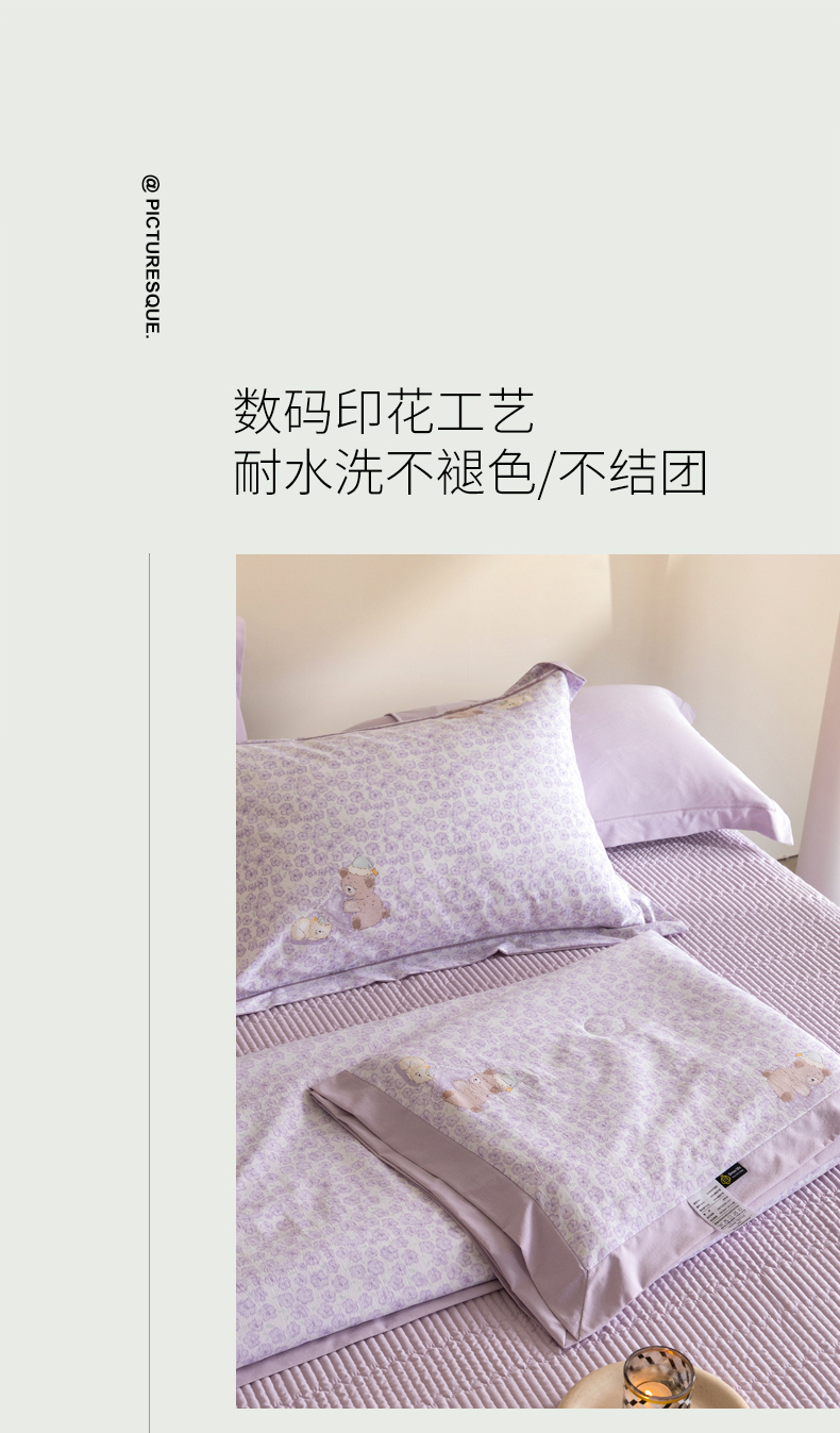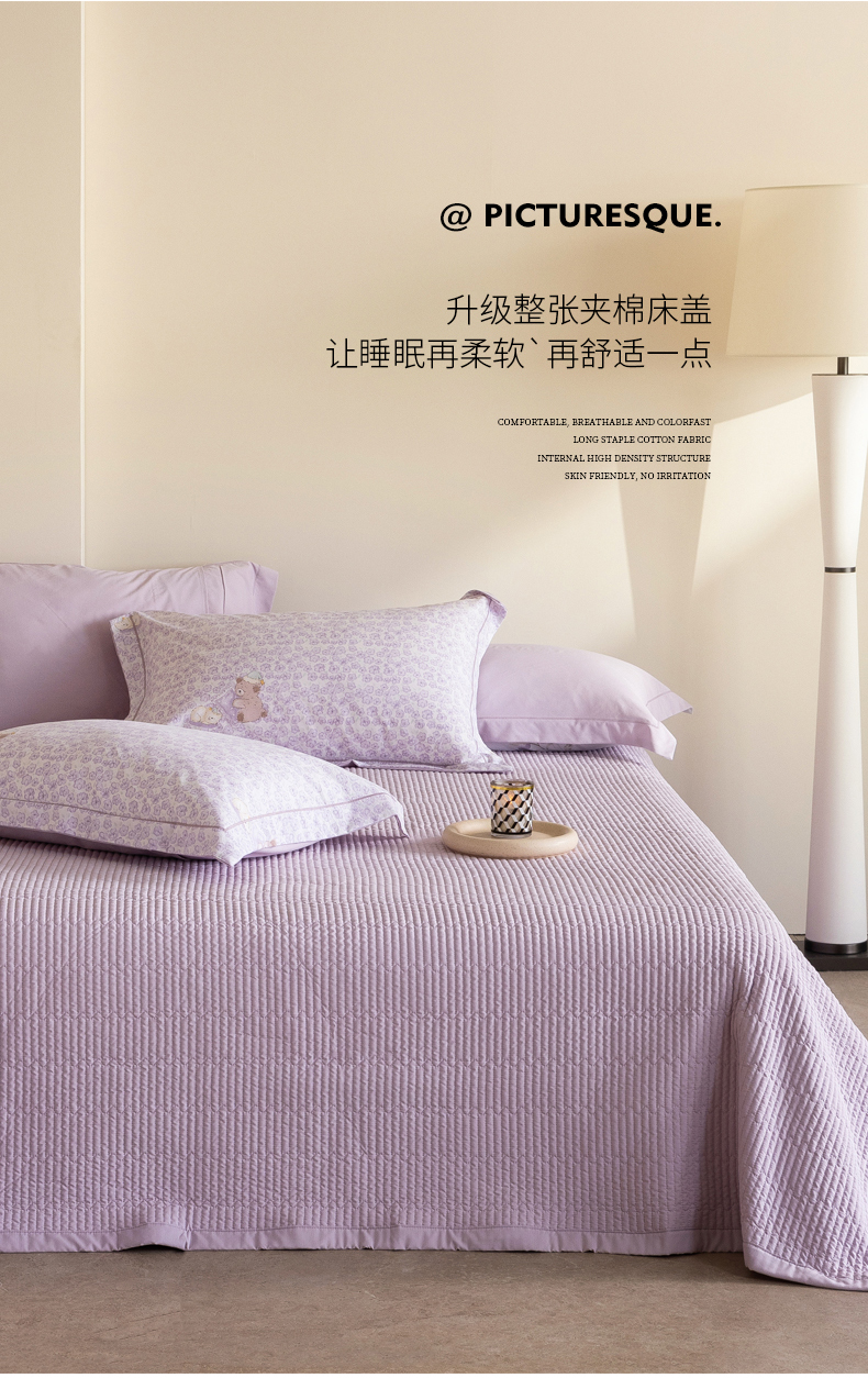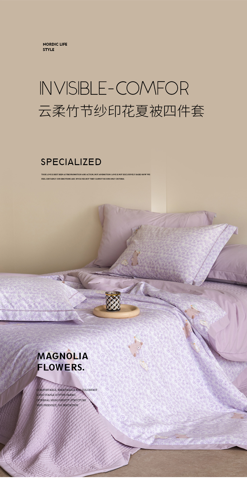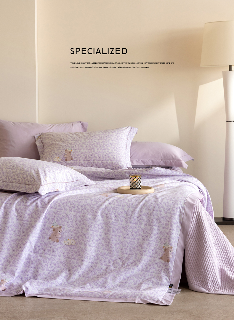 • 91家纺网 家纺一手货源 找家纺 立奥被业 2026新品冰丝棉夏被四件套竹节纱夏被四件套 熊可可-紫