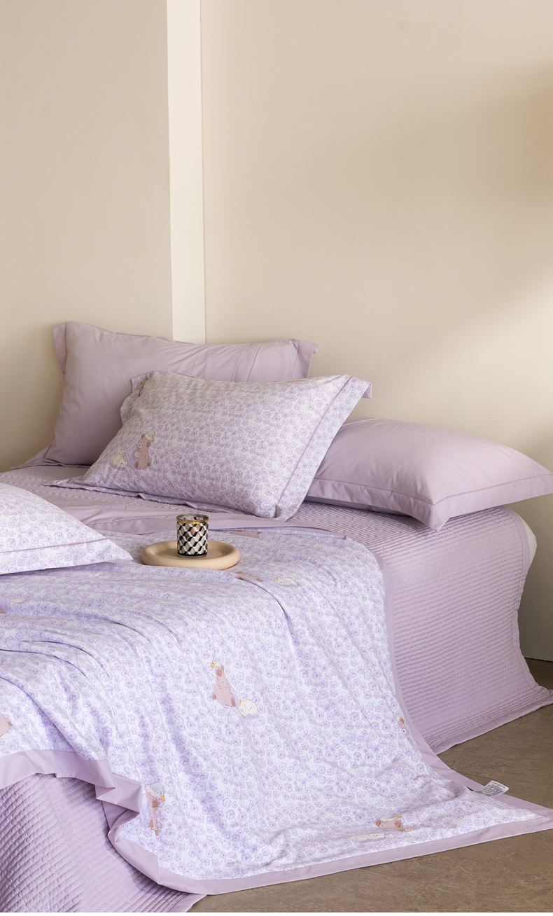 当前位置: 91家纺网 > 商品网购 > 被子 > 夏被 > 立奥被业 2026新品冰丝棉夏被四件套竹节纱夏被四件套 熊可可-紫