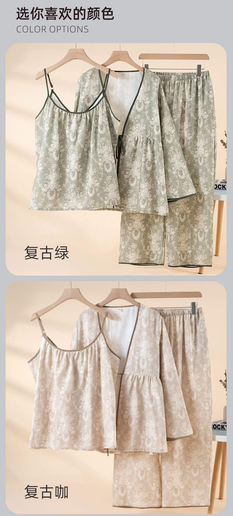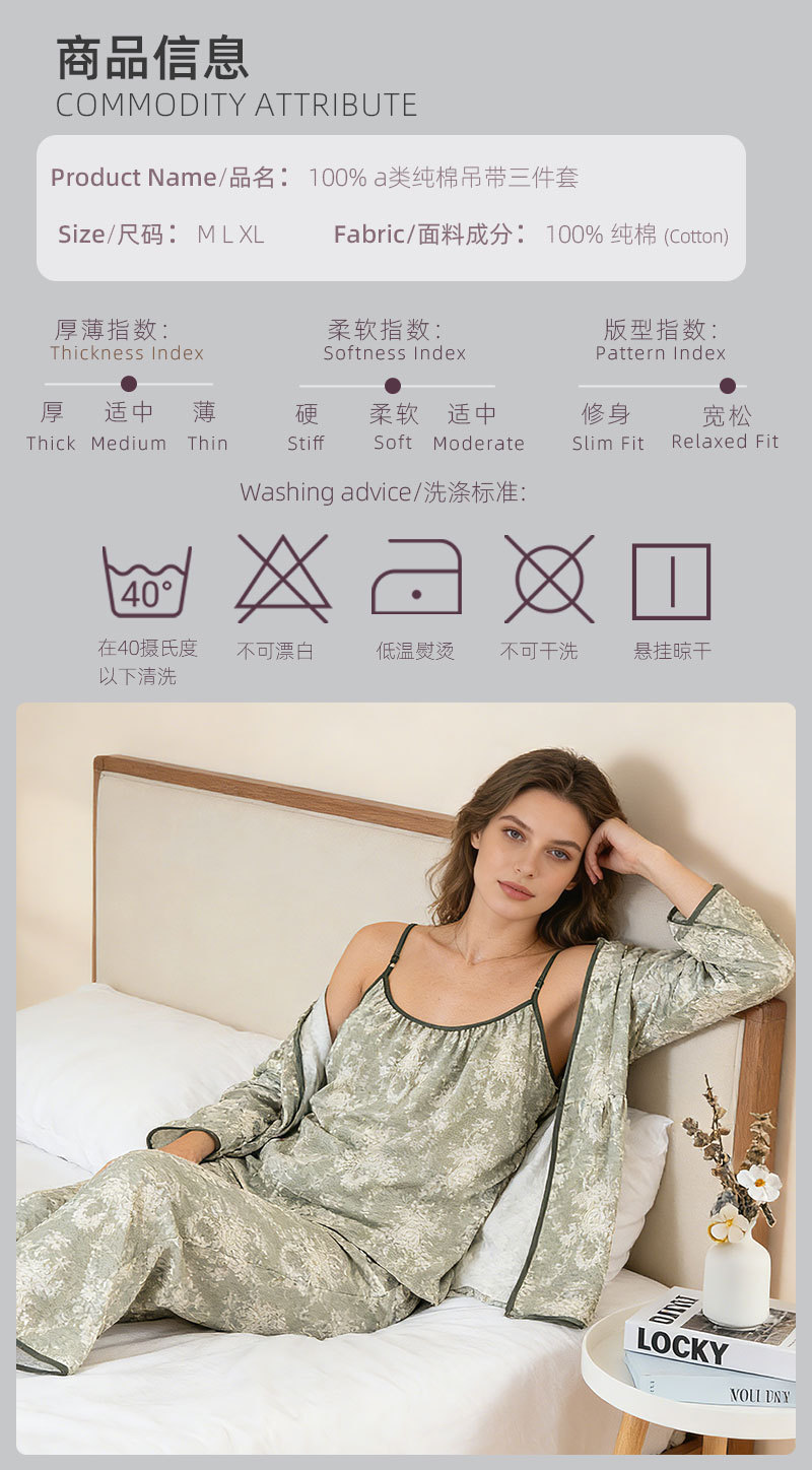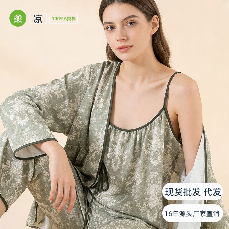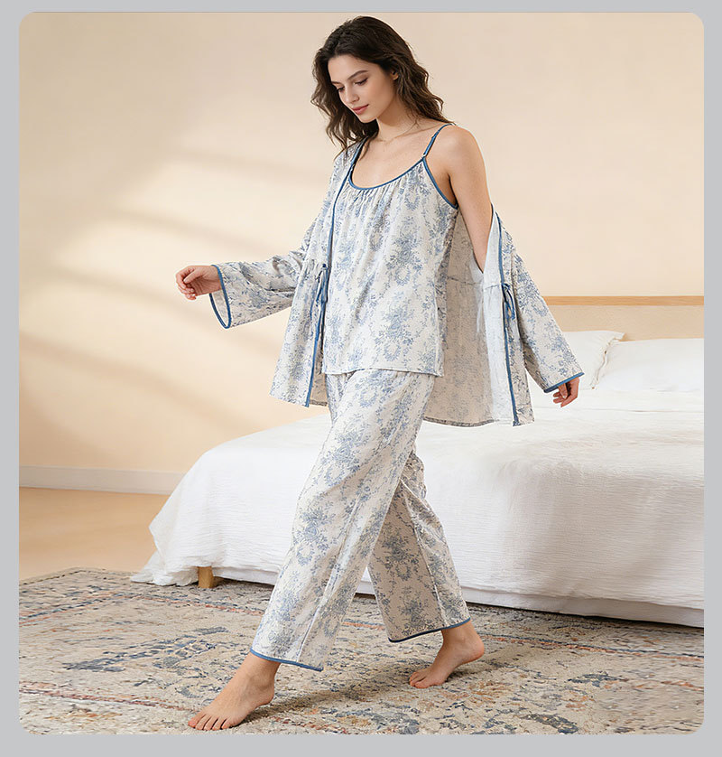 当前位置: 91家纺网 > 商品网购 > 居家日用 > 睡衣/家居服套装 > (总)洛兰沙家居馆 2026新款4色纱布家居服三件套