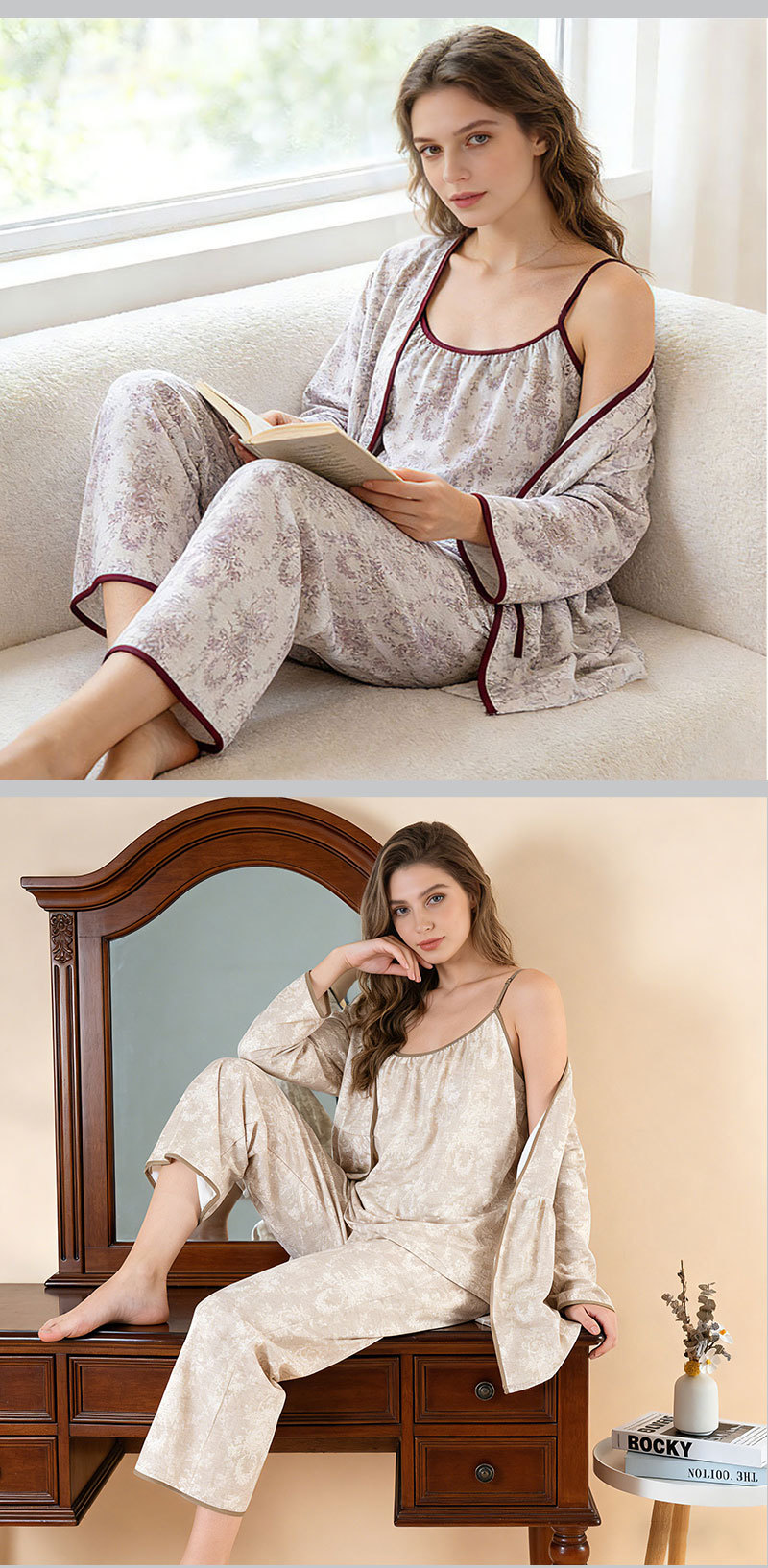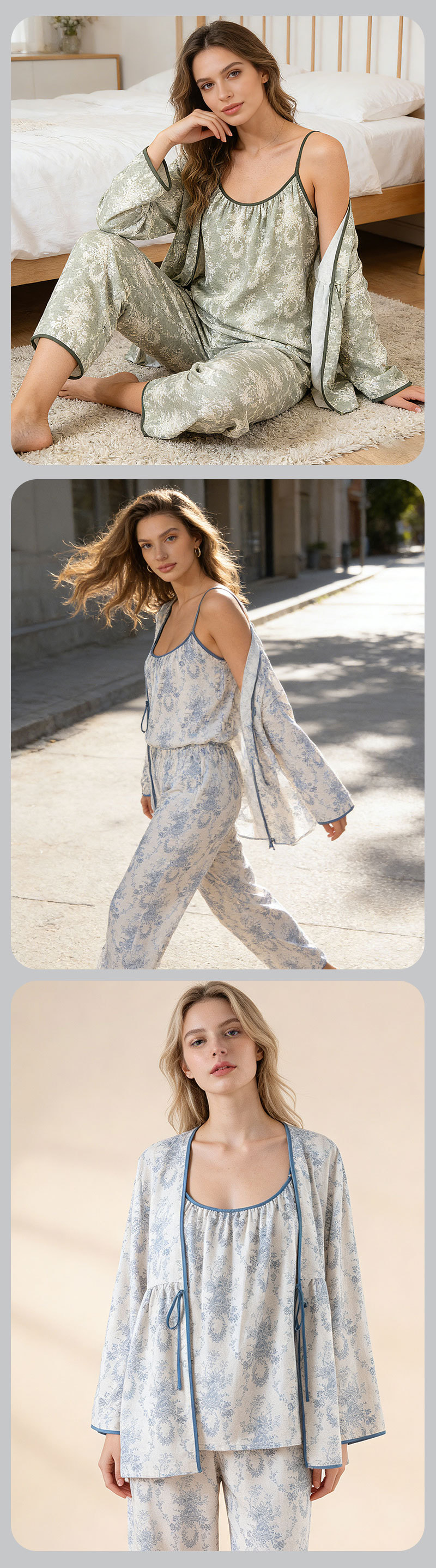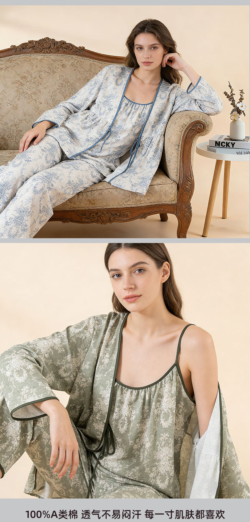 当前位置: 91家纺网 > 商品网购 > 居家日用 > 睡衣/家居服套装 > (总)洛兰沙家居馆 2026新款4色纱布家居服三件套