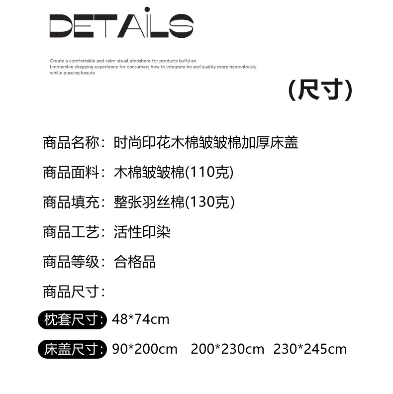 200*230cm床盖标准四件套 | ¥80.00 |