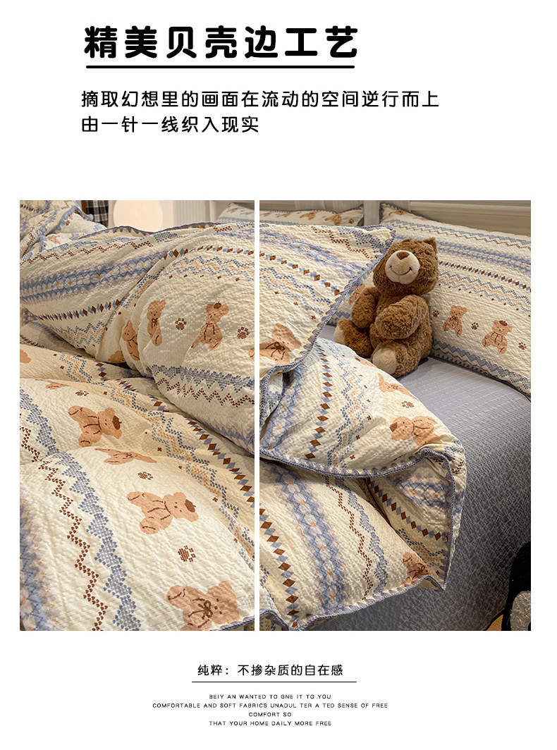 当前位置: 91家纺网 > 商品网购 > 床品套件 > 四件套 > 其它四件套 > 一比一家纺 2026新款云感泡芙棉小清新印花贝壳边四件套 萌趣小熊