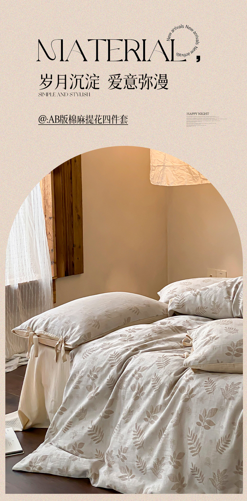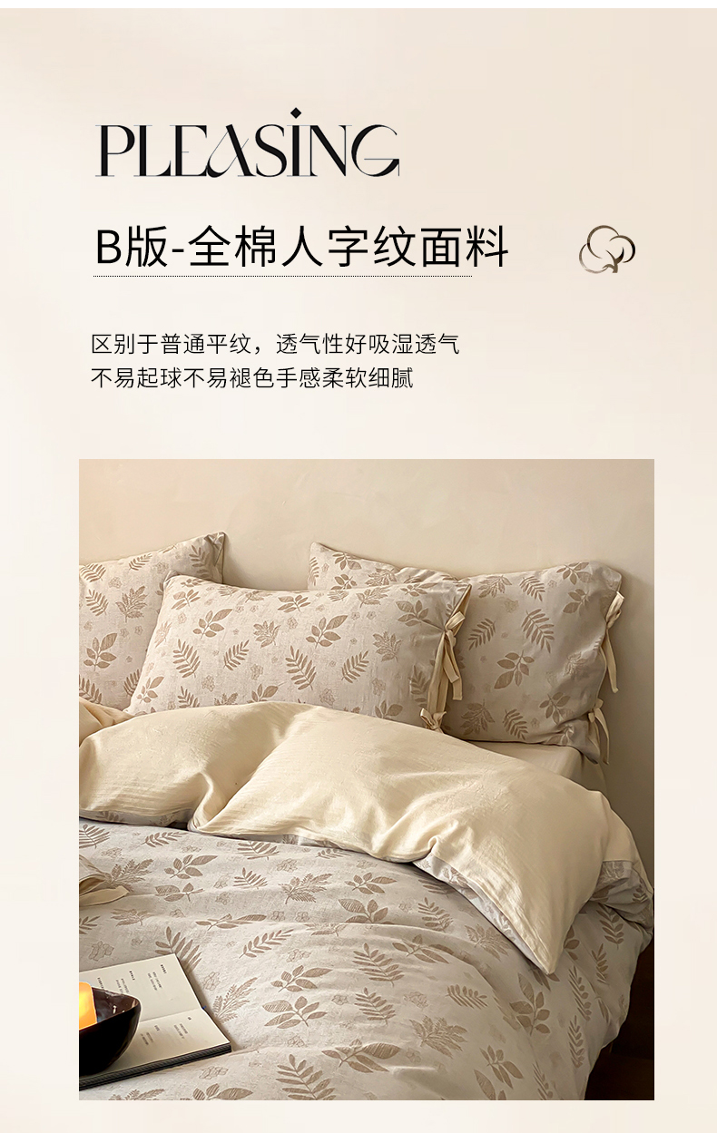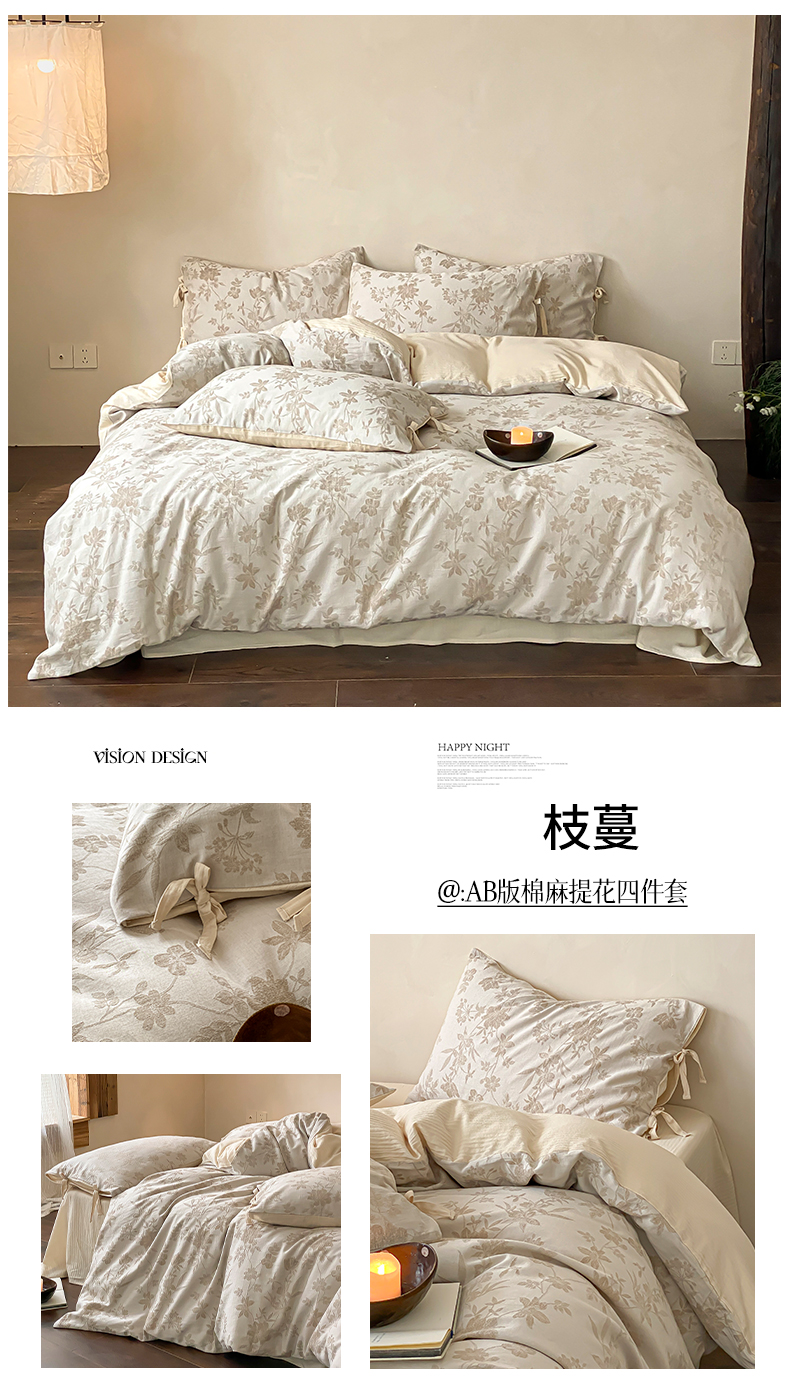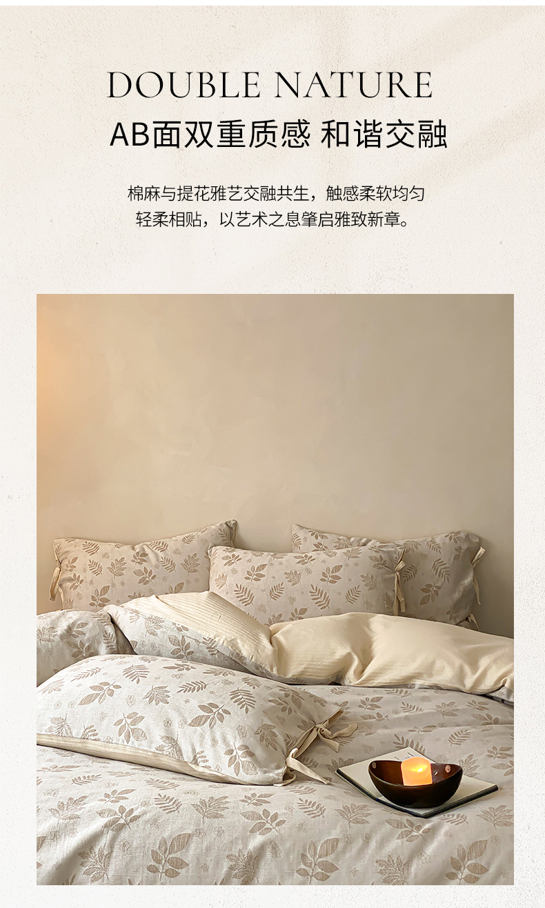当前位置: 91家纺网 > 商品网购 > 床品套件 > 四件套 > 全棉普通四件套 > 宜代光年 2026新款棉麻人字纹提花四件套系列 松野