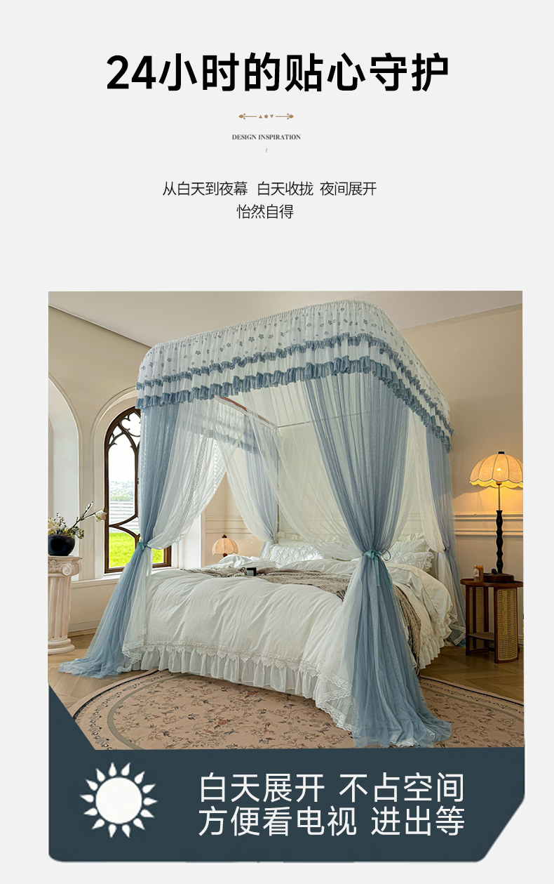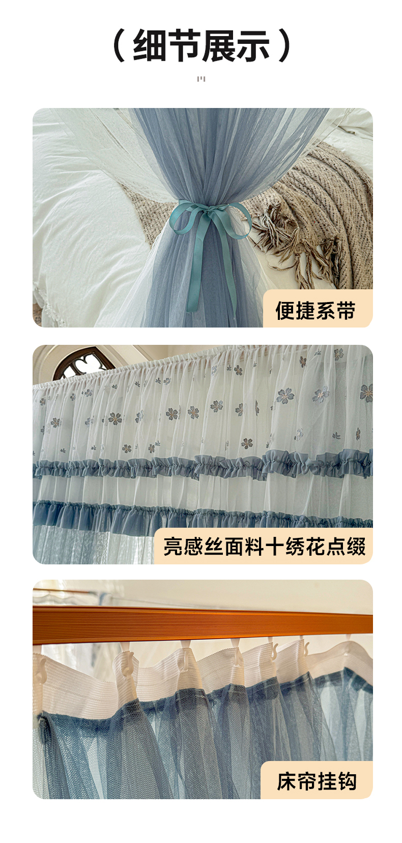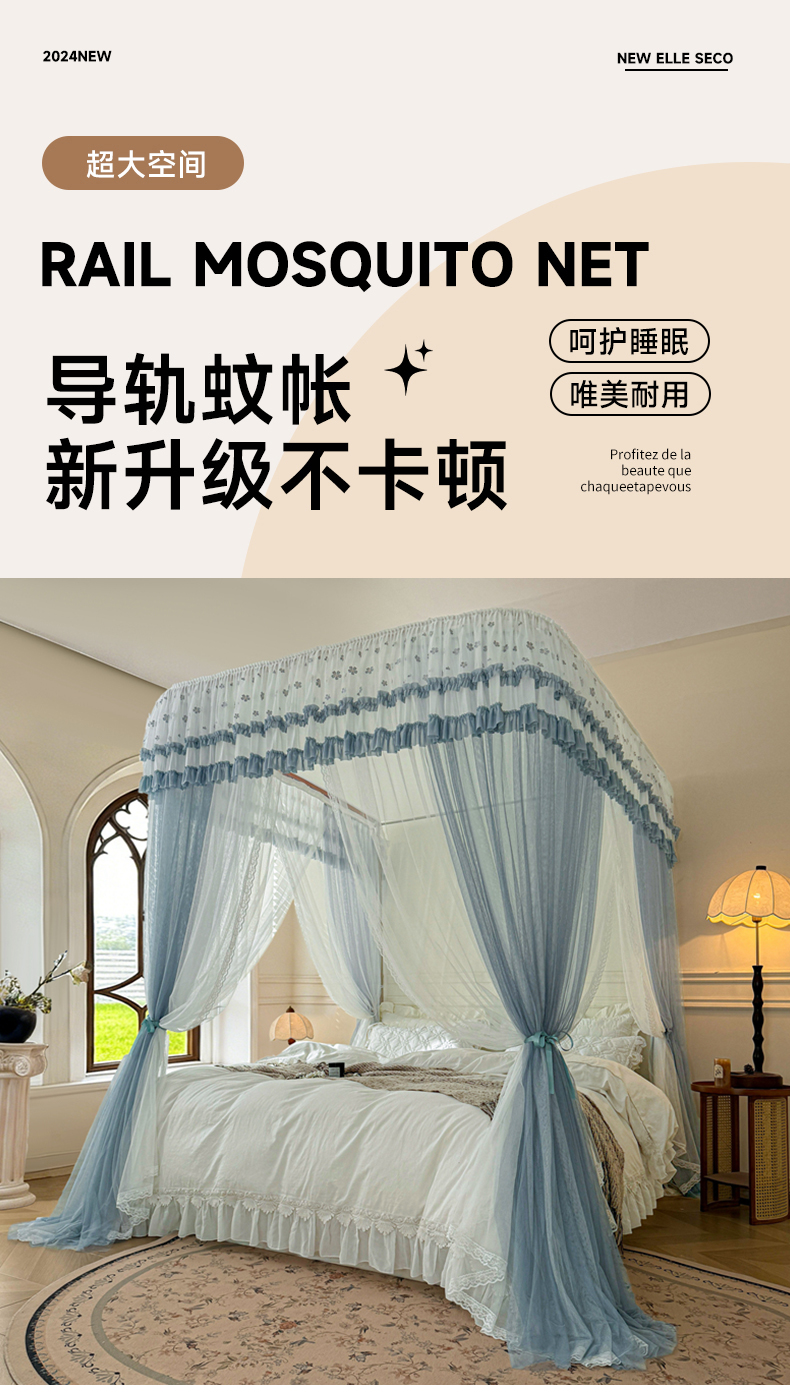 商品名称:梦尔佳蚊帐 2026新款百花盛开系列导轨蚊帐 双层 优雅蓝灰